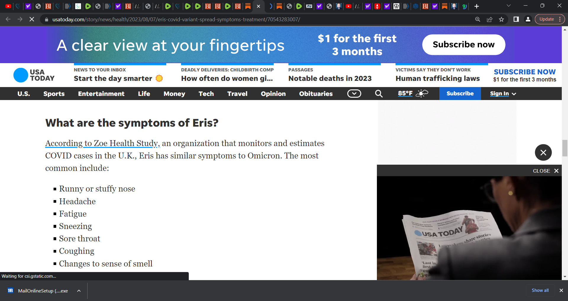 There’s nothing to connect the dots between EG.5.1 and this wave, which, while noteworthy and concerning, is not anything like Omicron-it’s <10%. We don’t know when this wave will peak, and whether the rise of EG.5.1 is contributing. It certainly does not look benign. Don’t ever forget the toll of Long Covid that results from such waves.