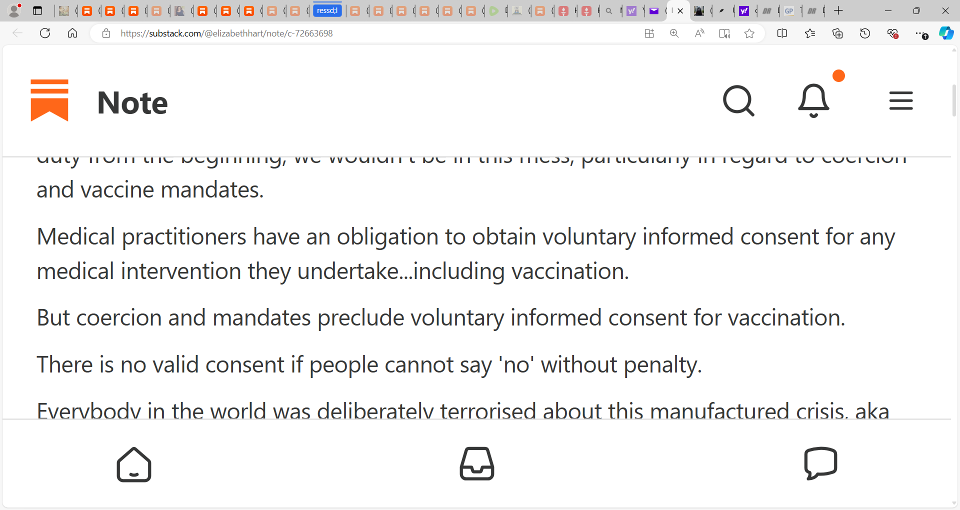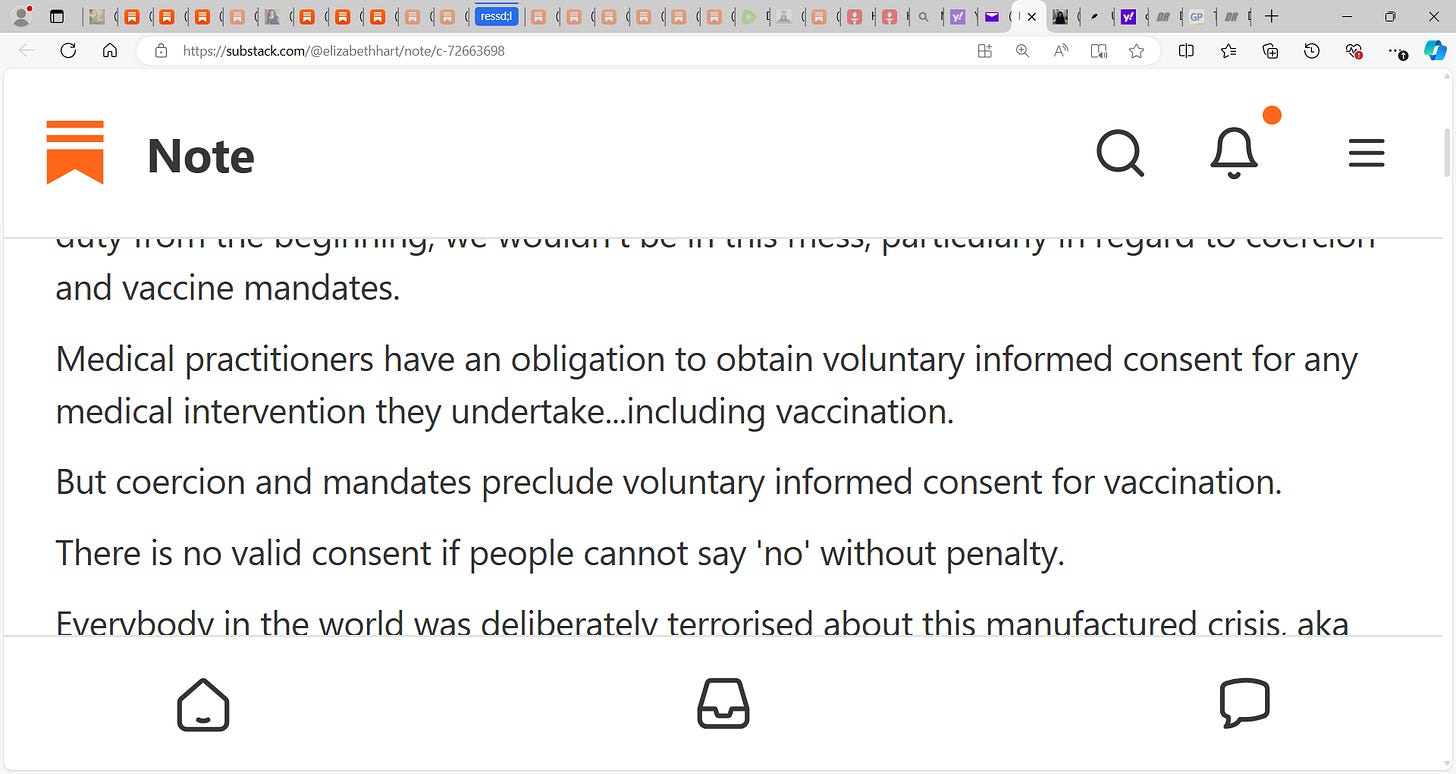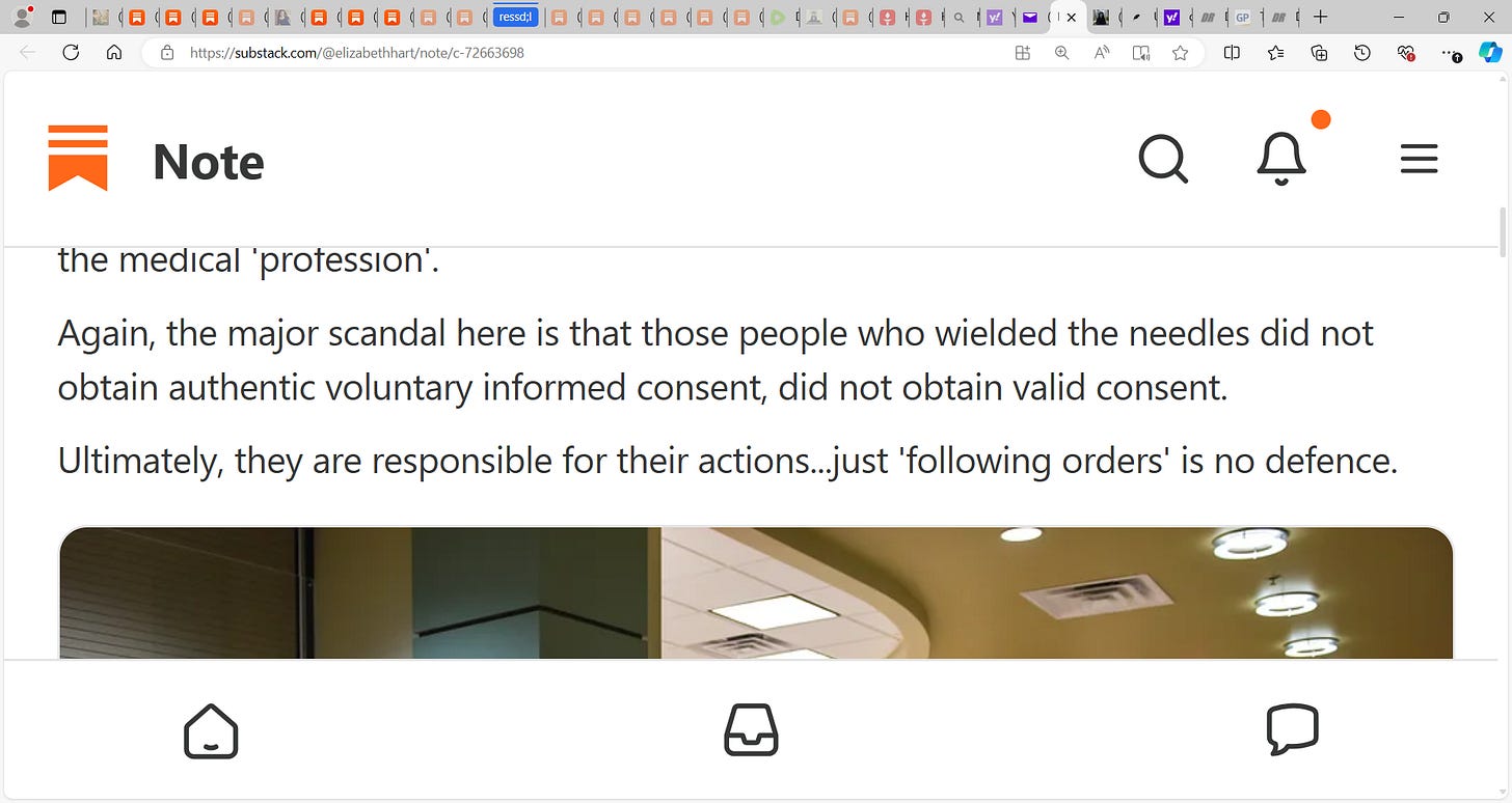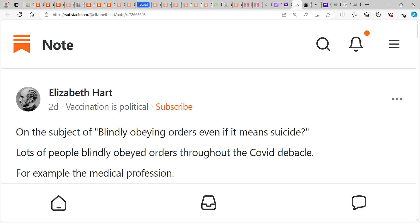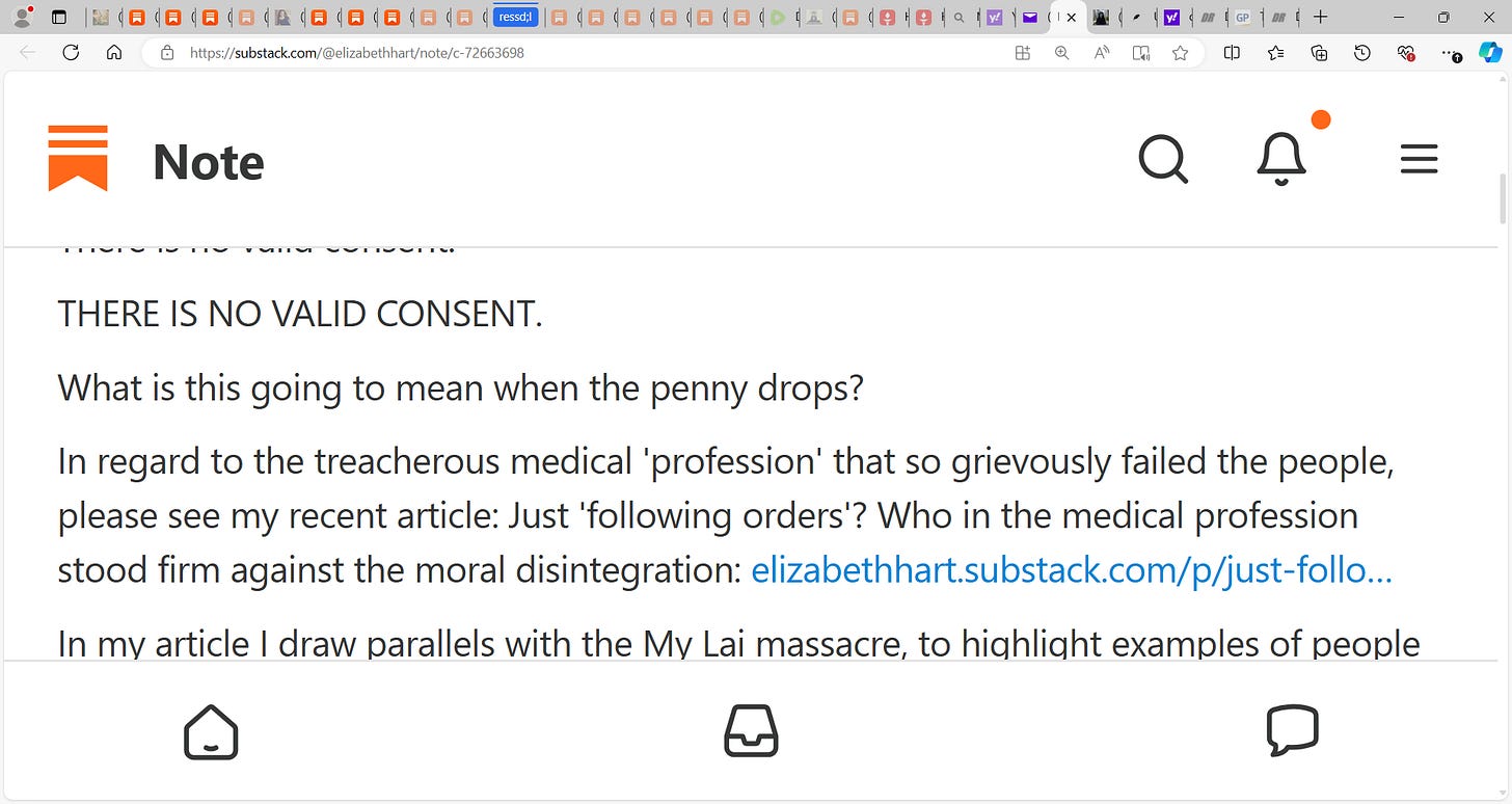 Elizabeth Hart writes that the informed consent/valid consent scandal of COVID and the mRNA gene vaccines is the sleeper issue & I tend to agree! see below, On the subject of "Blindly obeying orders