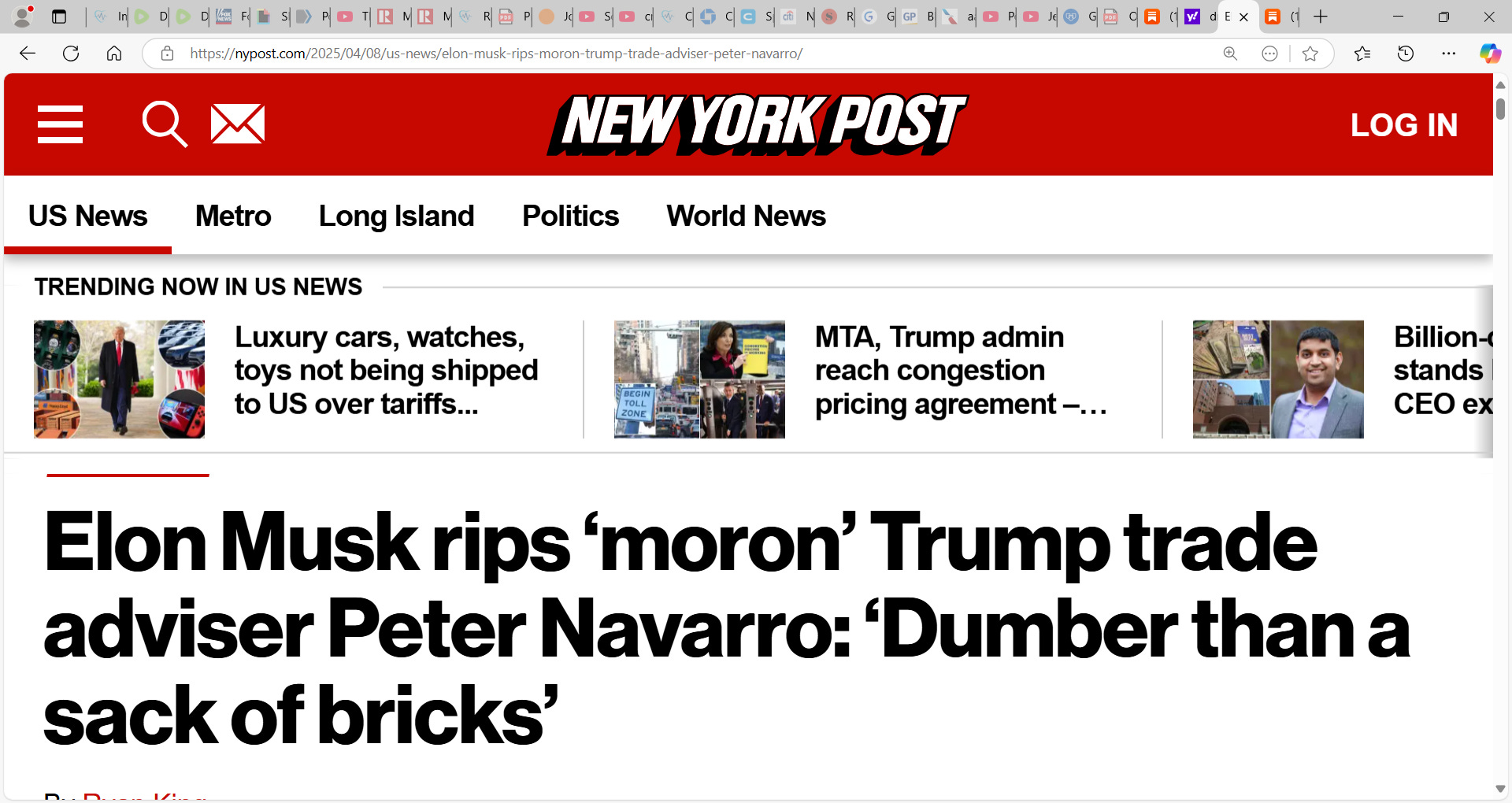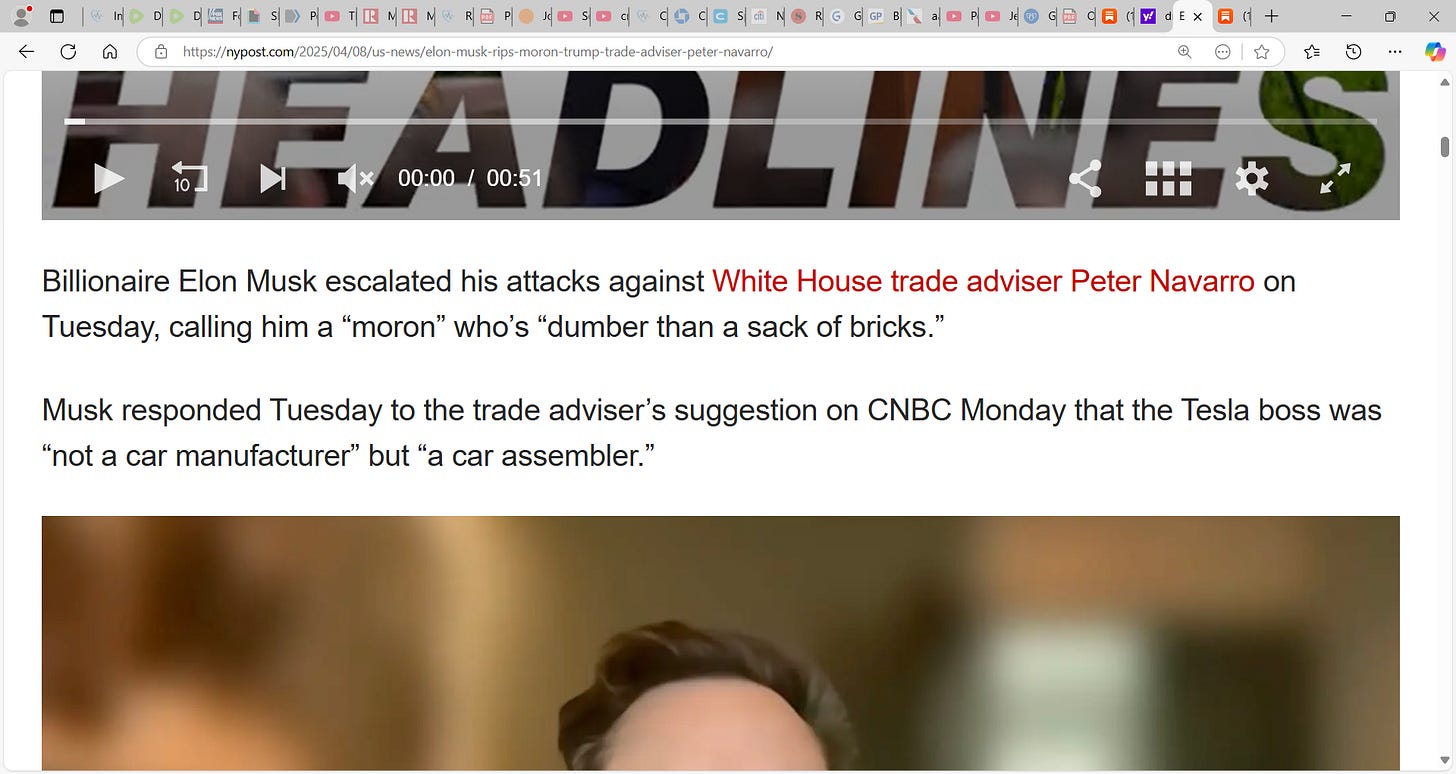 Over the weekend, Musk had first taken swipes against Navarro, seemingly irked by President Trump’s onslaught of tariffs last week that Navarro played a pivotal role in crafting.’