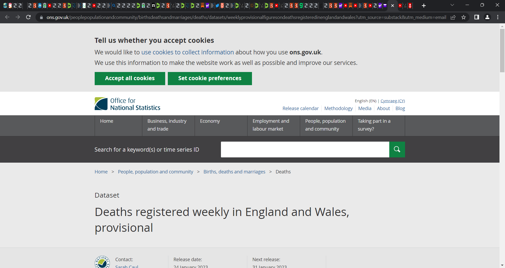 Of 17,604 deaths by cause below: and only 654 listed as ‘due’ to COVID, then what has caused the deaths week ending Jan 13th 2023? In this era of COVID gene injection and boosters. What? Is it deaths now due to delayed treatments during lockdowns? Or how people were treated in the medical system? Could be it due to the impact of the COVID injections?