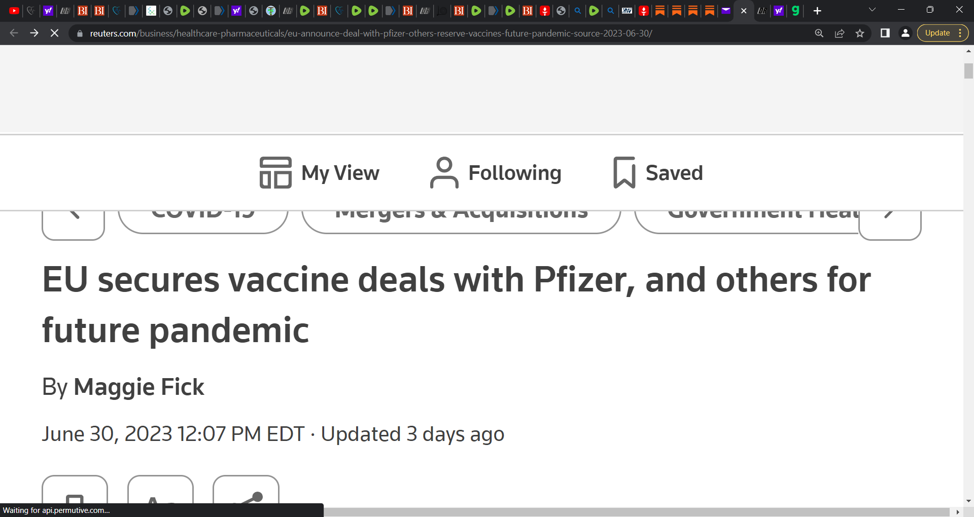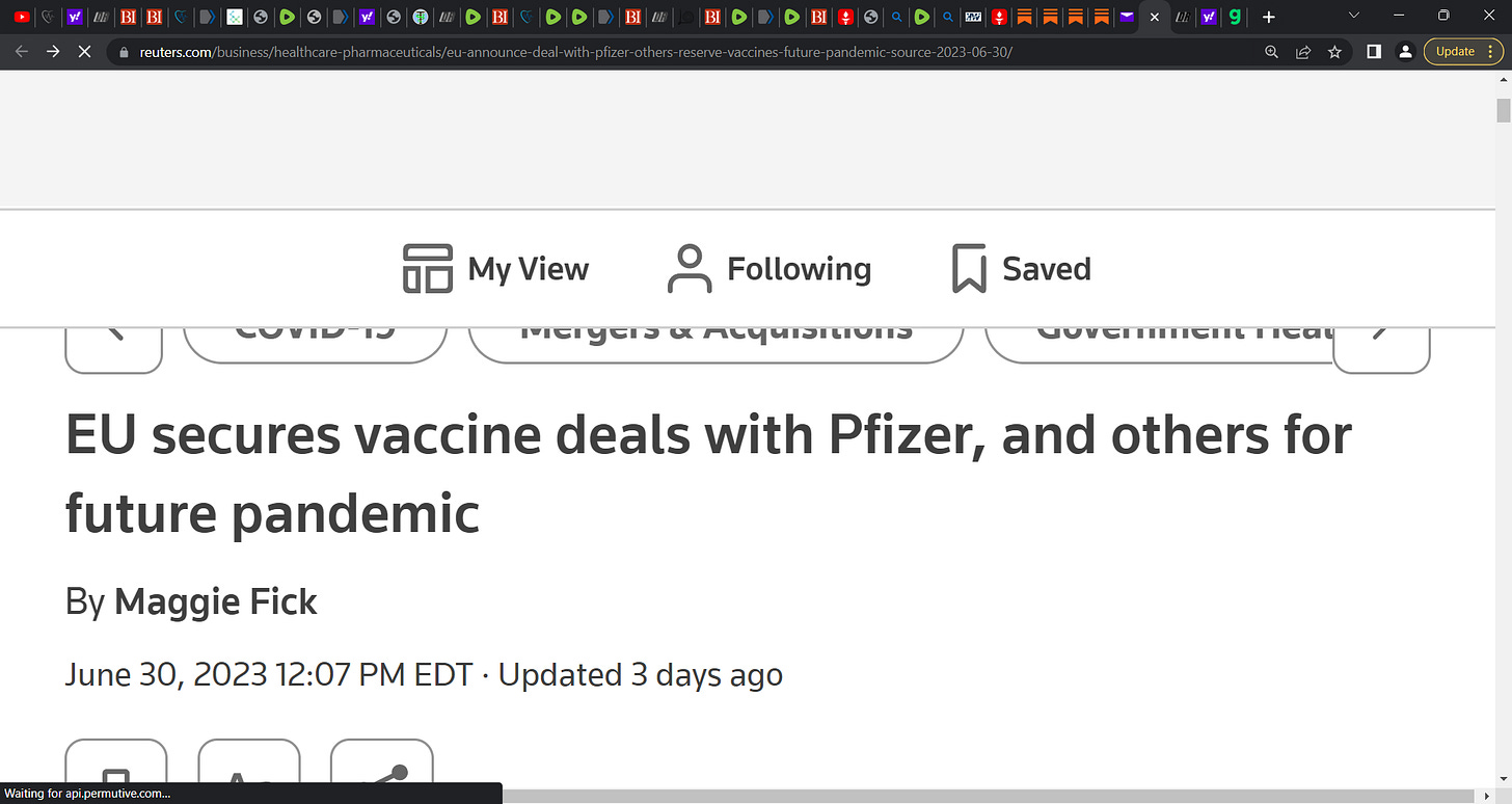 'EU secures vaccine deals with Pfizer, and others for future pandemic' (REUTERS): you see folks, we have no choice but to keep pressing to get Pfizer, Moderna, all of these criminal mRNA technology