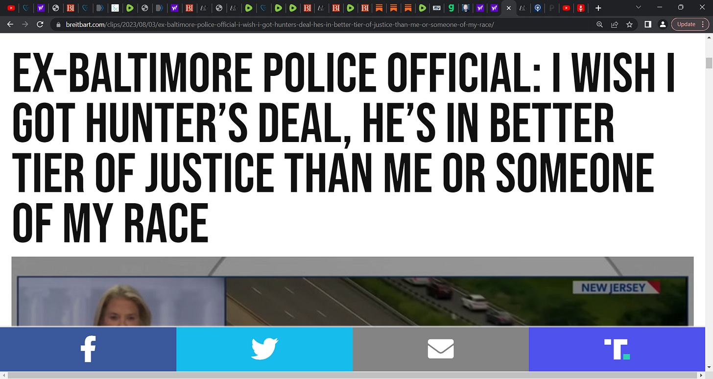 'Ex-Baltimore Police Official: I Wish I Got Hunter’s (Hunter Biden's) Deal, He’s in Better Tier of Justice than Me or Someone of My Race'...me as a black or brown person of color in America today