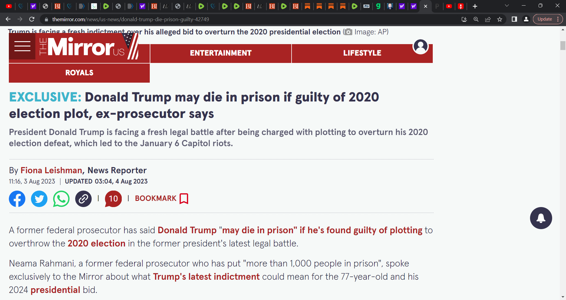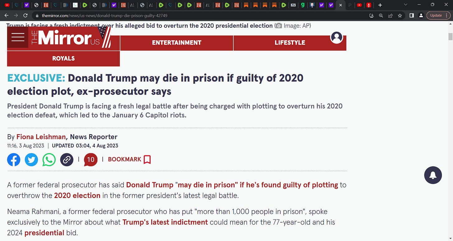 'EXCLUSIVE: Donald Trump may die in prison if guilty of 2020 election plot, ex-prosecutor says'; this is what these evil beasts want, for you to not vote for him for he is in jail or they shoot him;