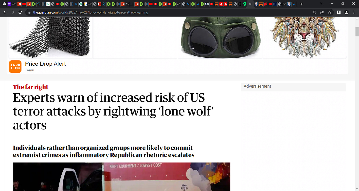 'Experts warn of increased risk of US terror attacks by rightwing ‘lone wolf’ actors'; are you EFF in kidding me? When we have known jihadists islamists & Chinese pouring across the Southern border