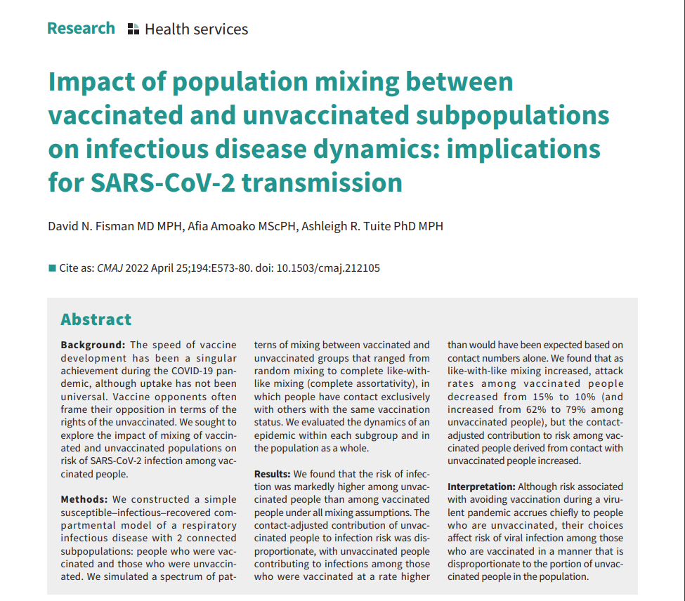 Immediately after the “study” was published, the absurd headline “Mixing with the unvaccinated increases the risk of COVID - 19 infection for fully vaccinated” was blasted across multiple legacy media outlets: