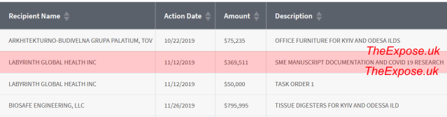 Furthermore, it is intriguing that both the DOD and the contracting company subsequently paid Labyrinth Global Health INC to conduct COVID-19 research in Ukraine prior to the emergence of the novel coronavirus and before it was officially named Covid-19.