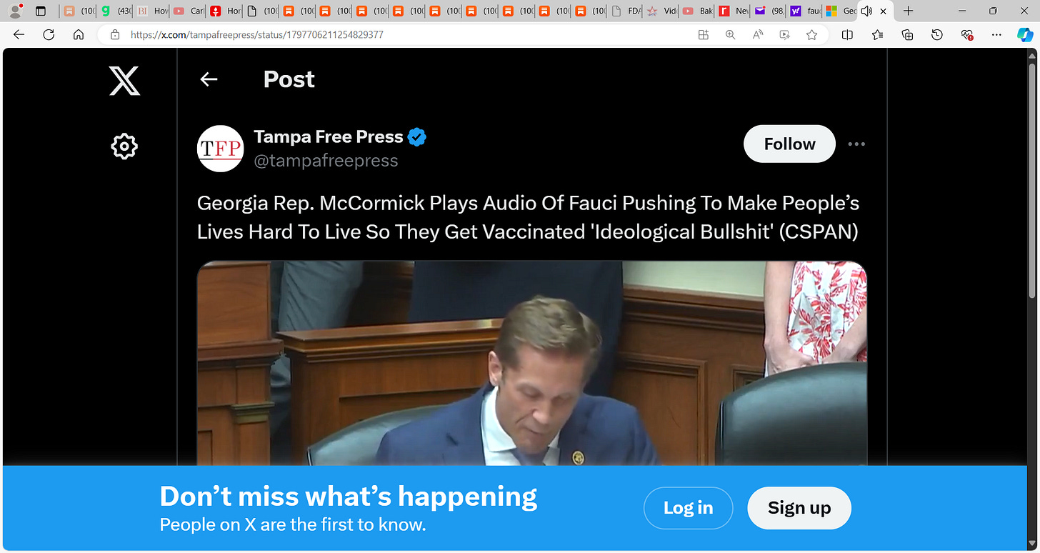 NOT one COVID patient, a technocrat, FAUCI para said this "once people feel empowered and protected...legally, you will have schools, colleges say you want to come here, you gonna get vaccinated