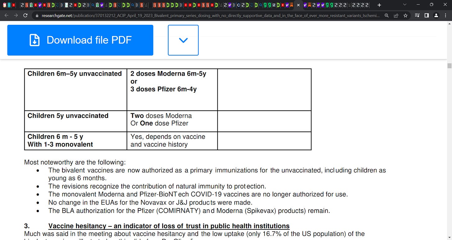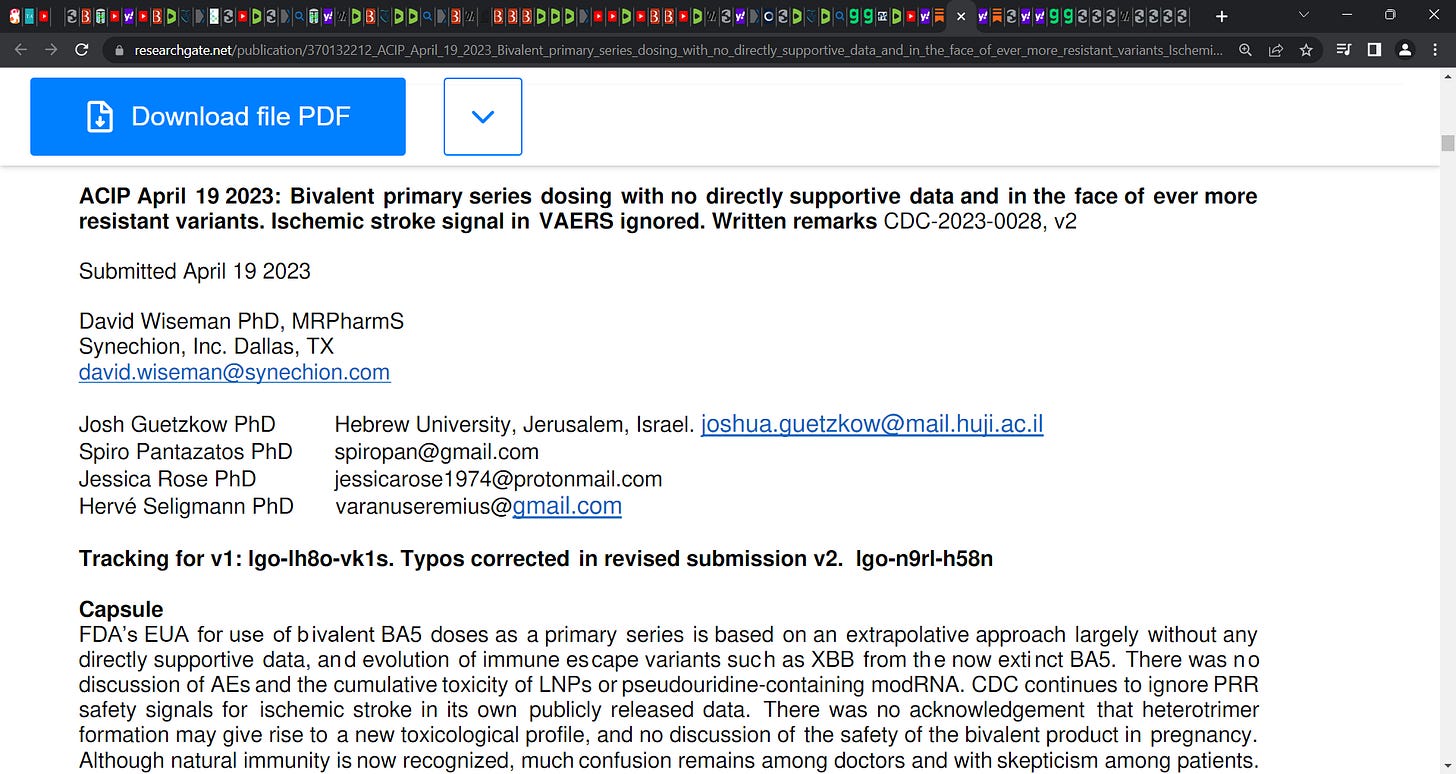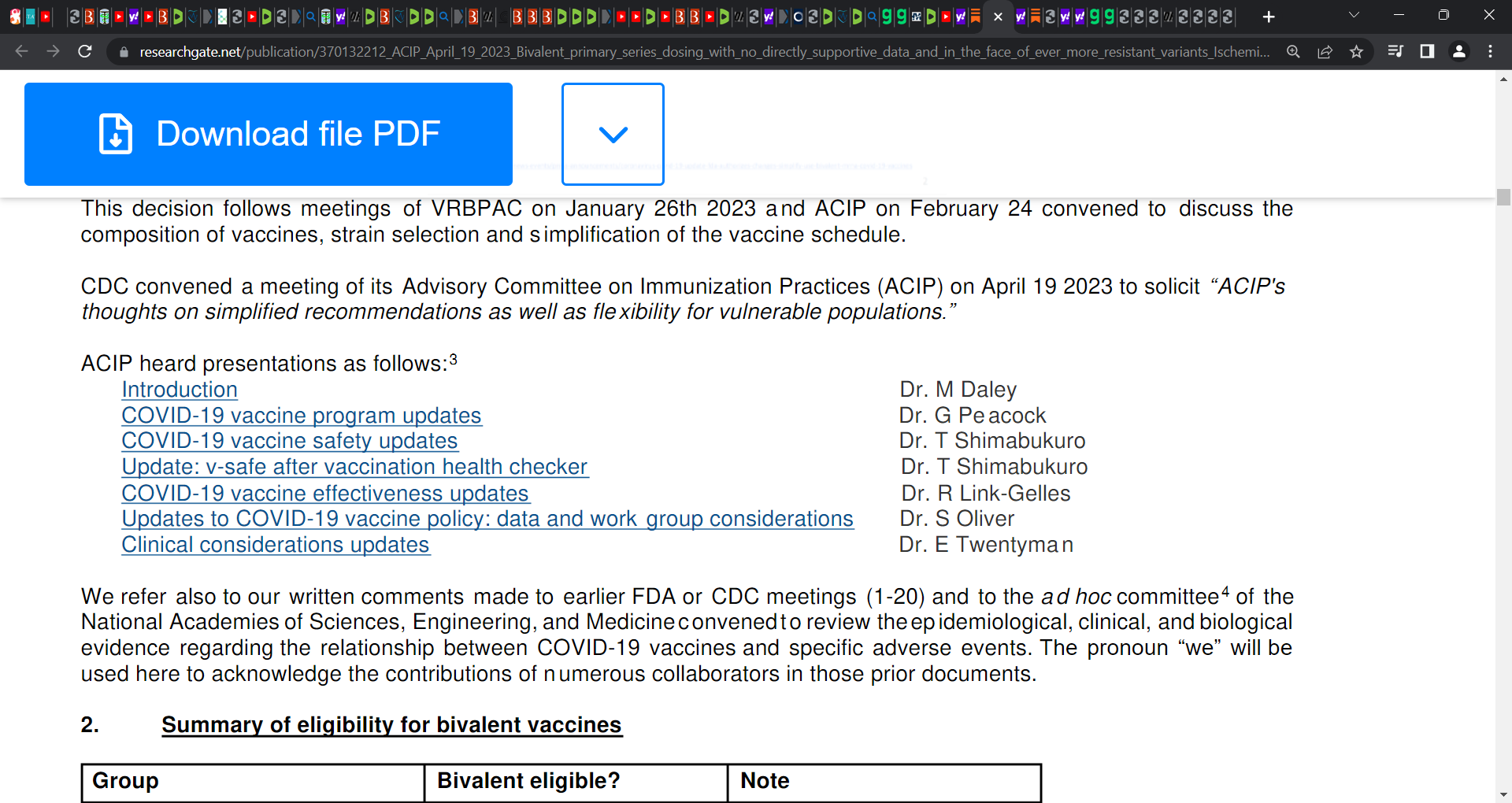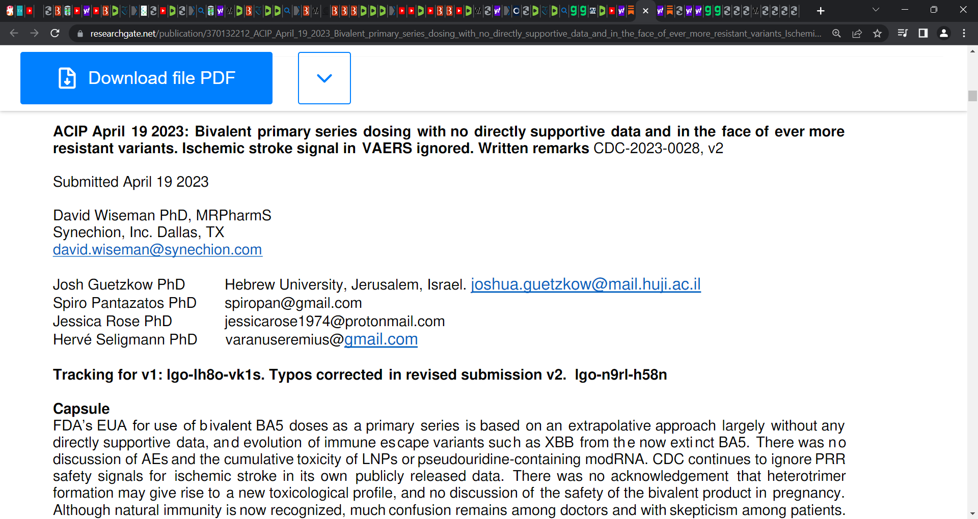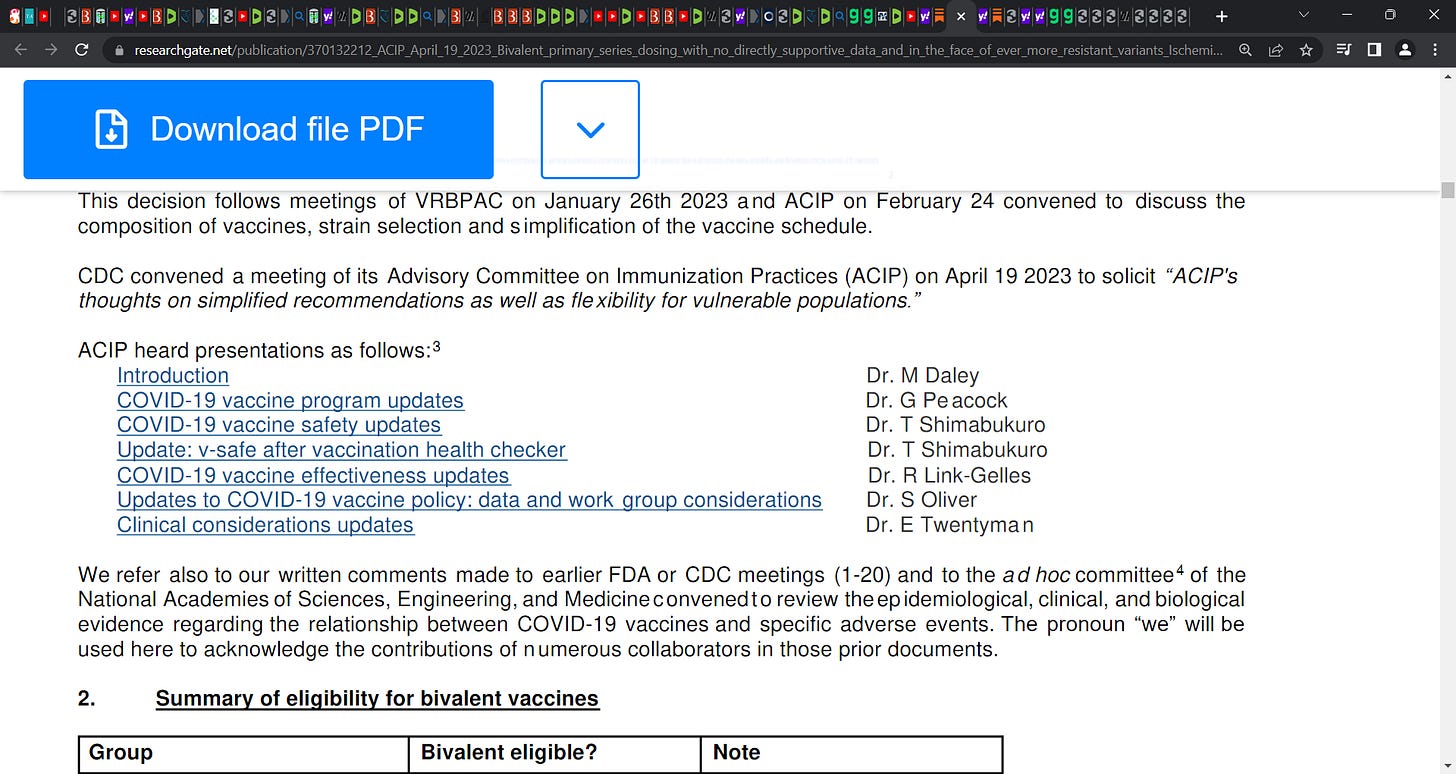 ACIP April 19 2023: Bivalent primary series dosing with no directly supportive data and in the face of ever more resistant variants. Ischemic stroke signal in VAERS ignored. Written remarks CDC-2023-0028