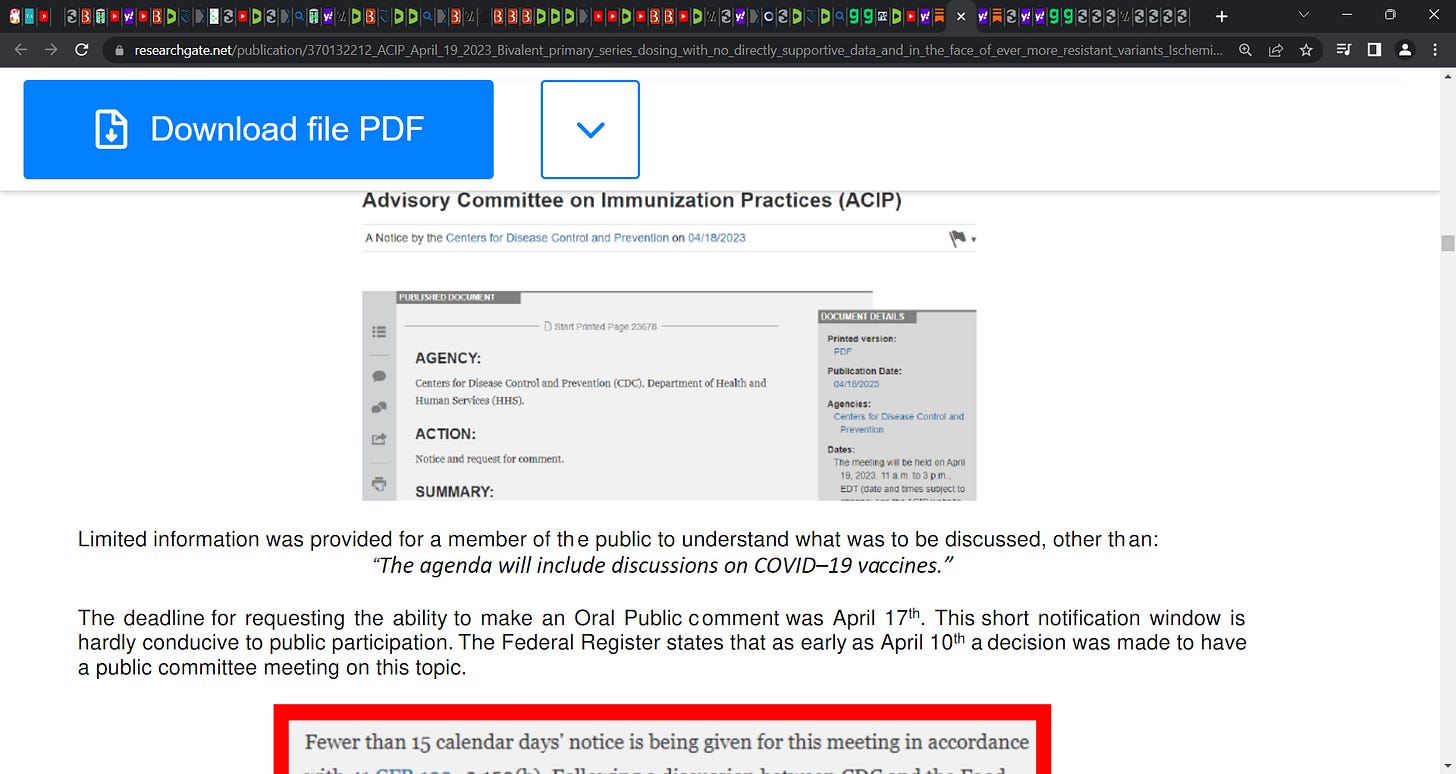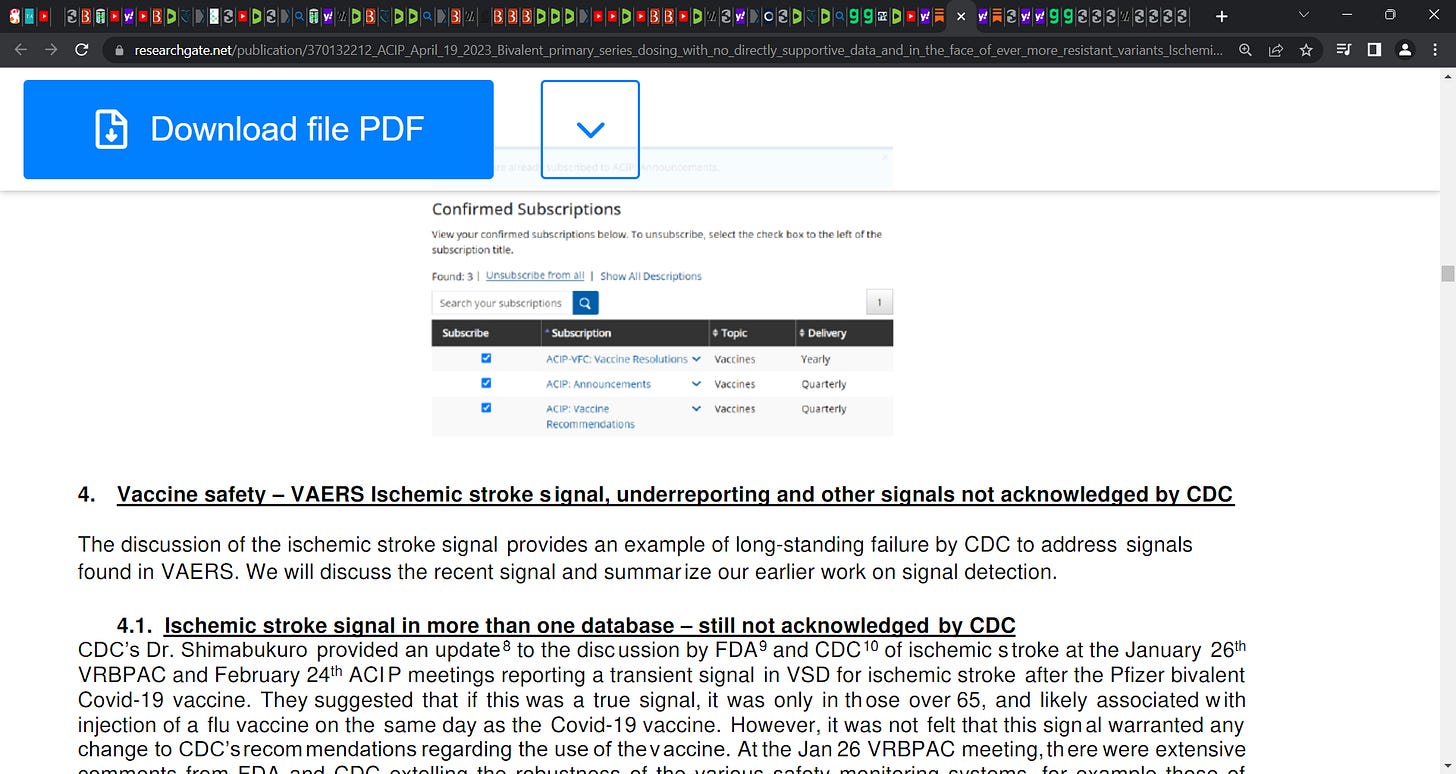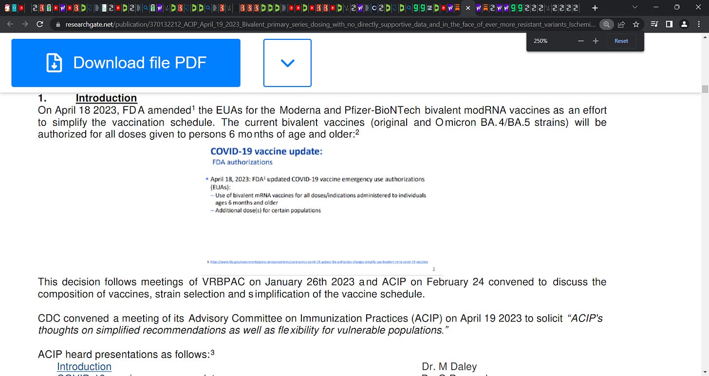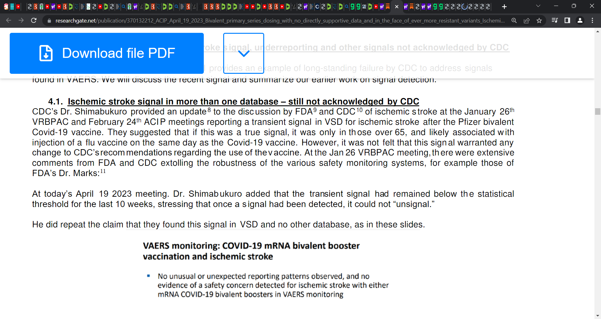 ACIP April 19 2023: Bivalent primary series dosing with no directly supportive data and in the face of ever more resistant variants. Ischemic stroke signal in VAERS ignored. Written remarks CDC-2023-0028