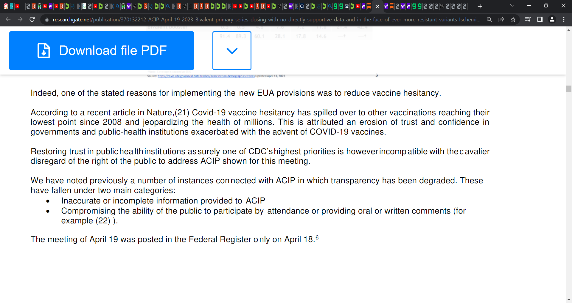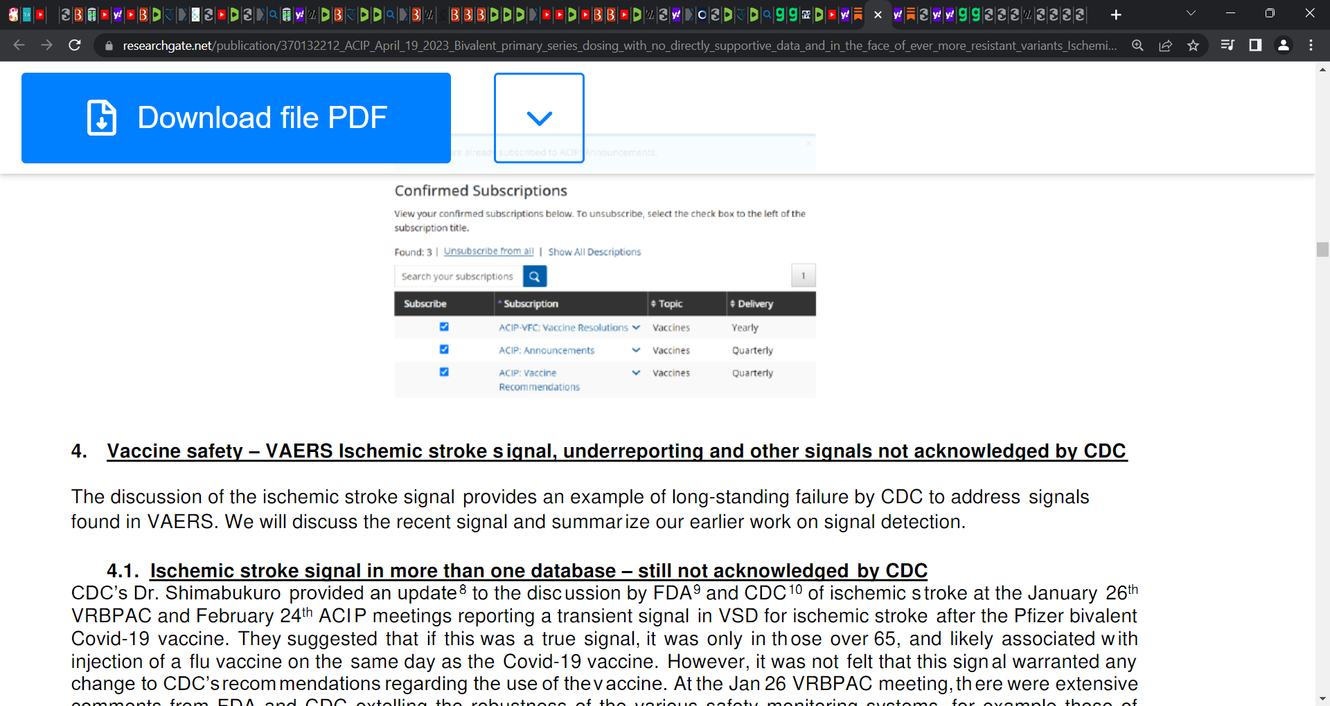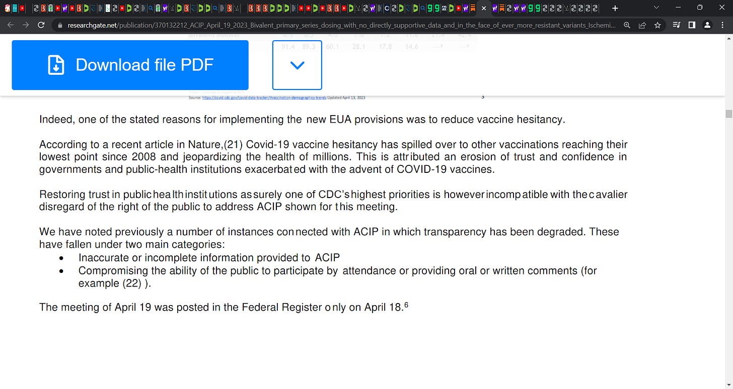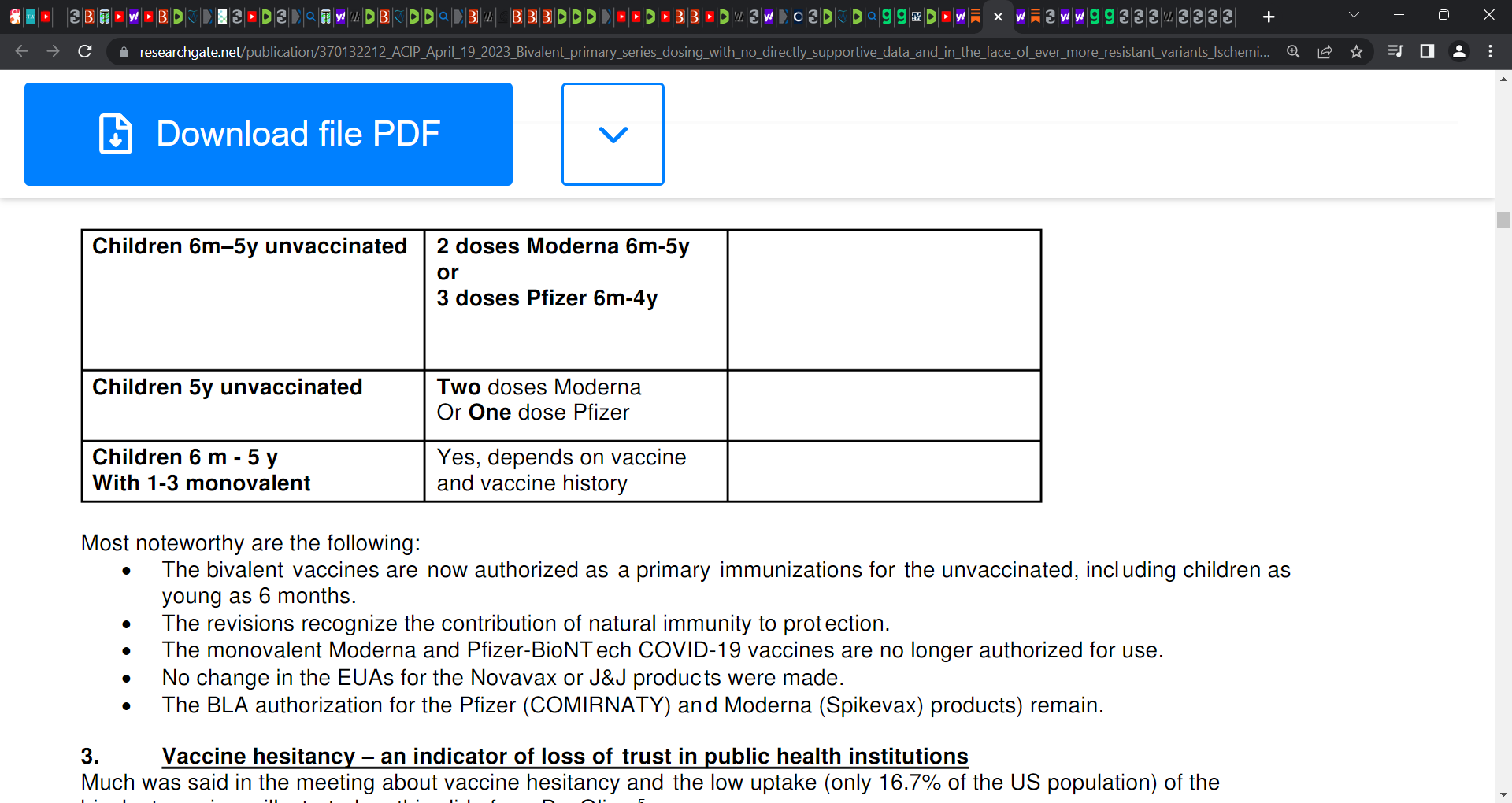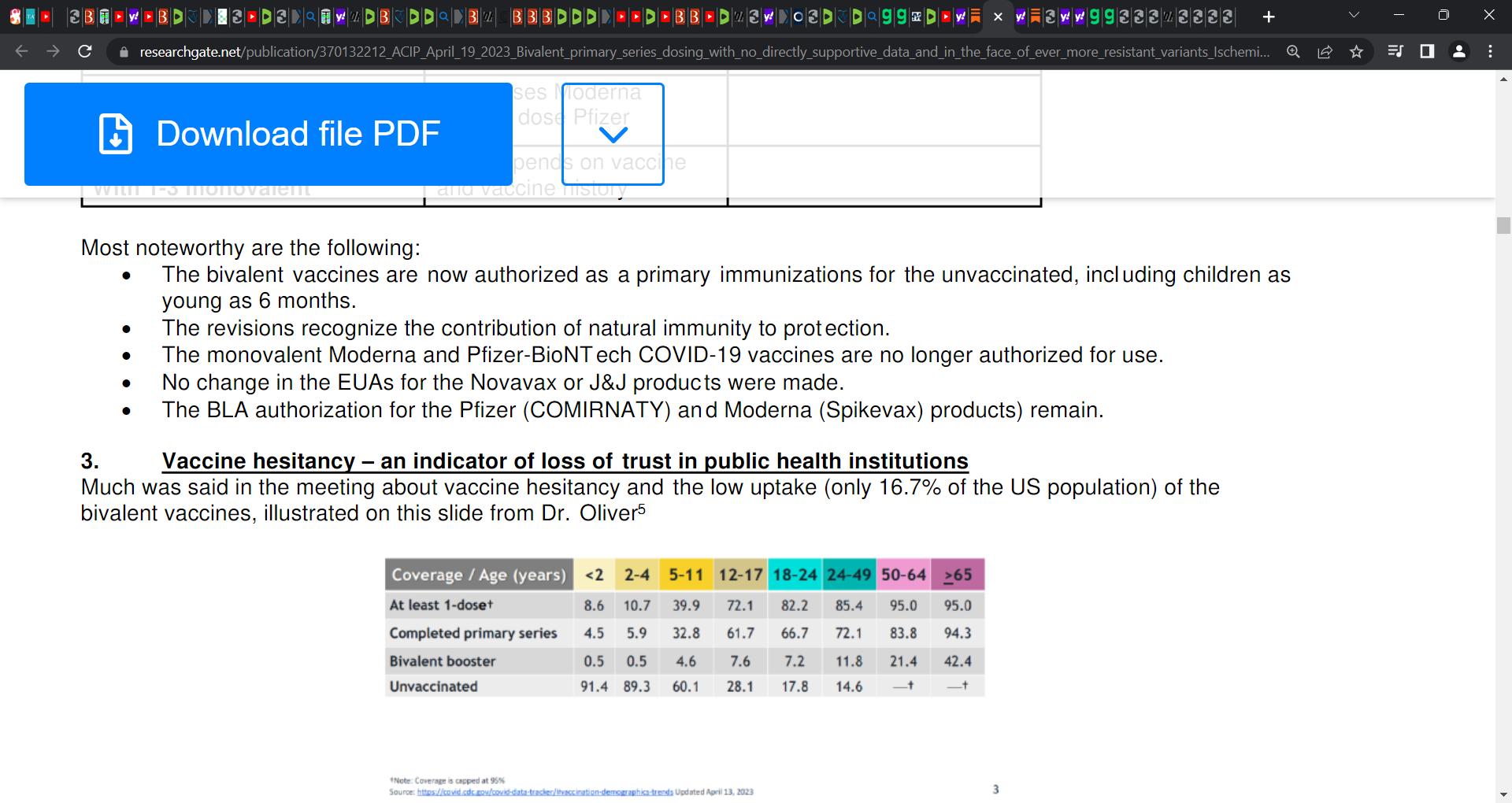 ACIP April 19 2023: Bivalent primary series dosing with no directly supportive data and in the face of ever more resistant variants. Ischemic stroke signal in VAERS ignored. Written remarks CDC-2023-0028