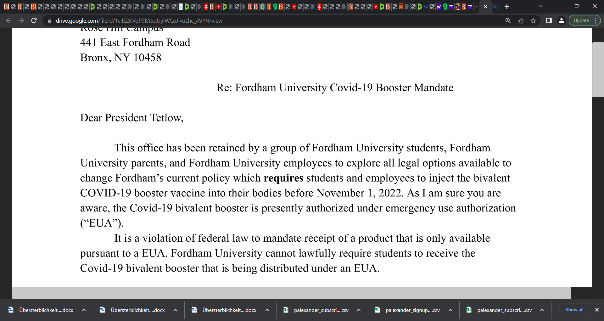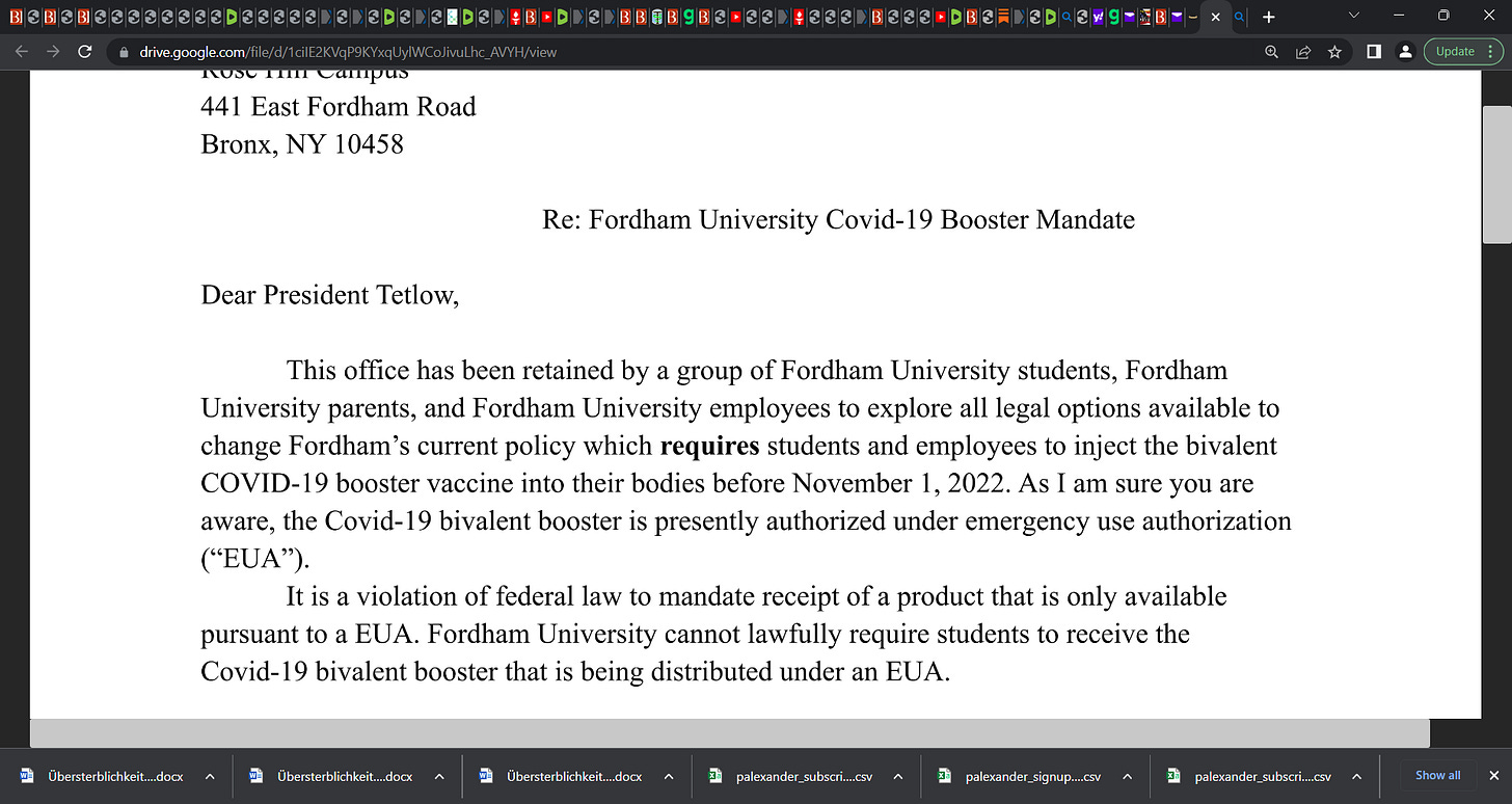 Fordham University Mandated the Bivalent Booster. The Deadline is November 1st. Members of the Fordham community are outraged. They are speaking out and taking action. Good for them!