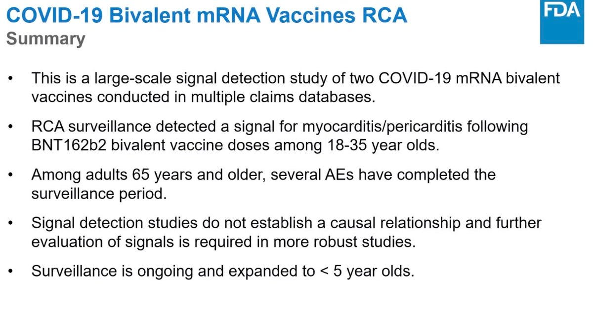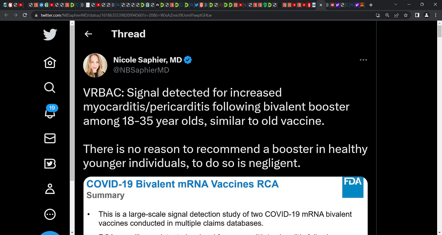 ‘VRBAC: Signal detected for increased myocarditis/pericarditis following bivalent booster among 18-35 year olds, similar to old vaccine. There is no reason to recommend a booster in healthy younger individuals, to do so is negligent.’