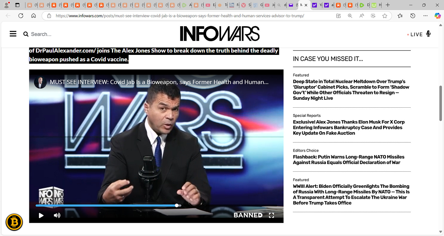 MUST SEE INTERVIEW: Covid Jab Is A Bioweapon, Says Former Health and Human Services Advisor to Trump; see this interview I did with Alex Jones in his Austin Texas before they went after him