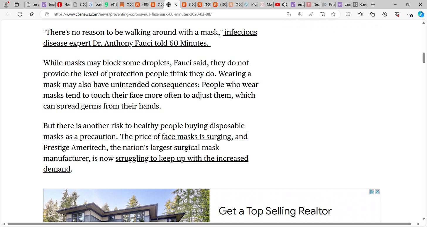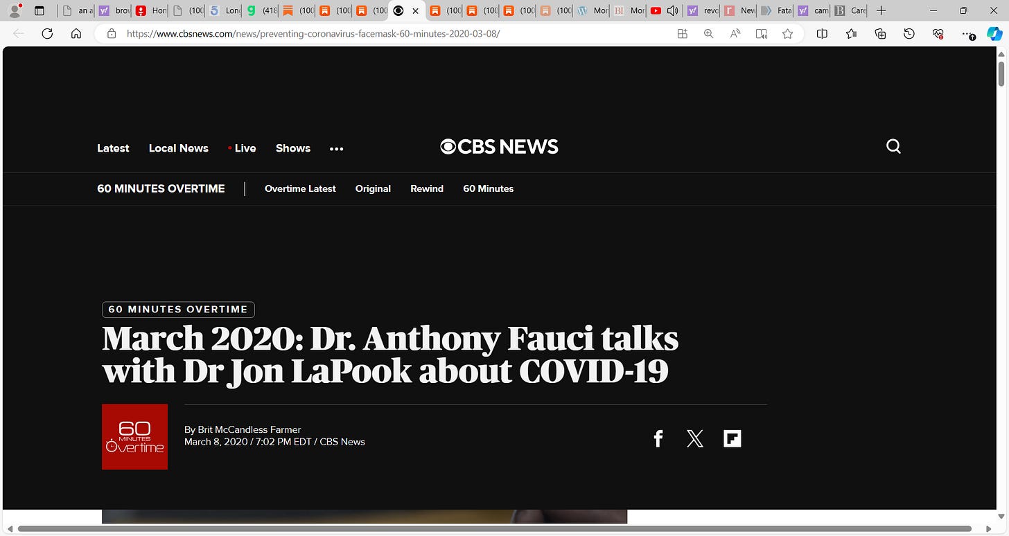 Frame one is Dr. Anthony Fauci in early March 2020 telling us that the surgical masks are useless & no need walk around with them (not needed for respiratory viruses) then Frame 2 happened; why?