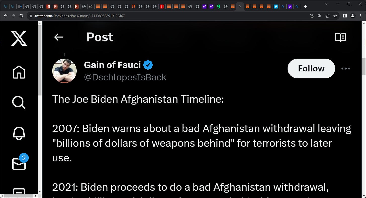 'Gain of Fauci' reminded us so we don't forget what Biden said & actually did (2007 to 2021) & now the aftermath in Israell; Joe Biden Afghanistan Timeline, 2007: Biden warns about a bad Afghanistan