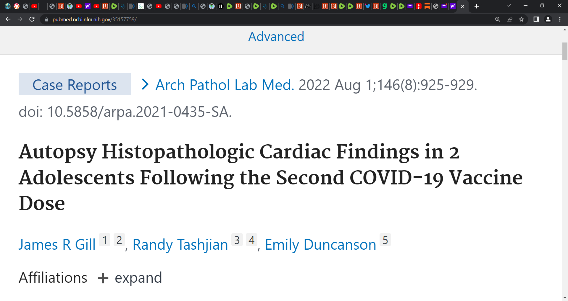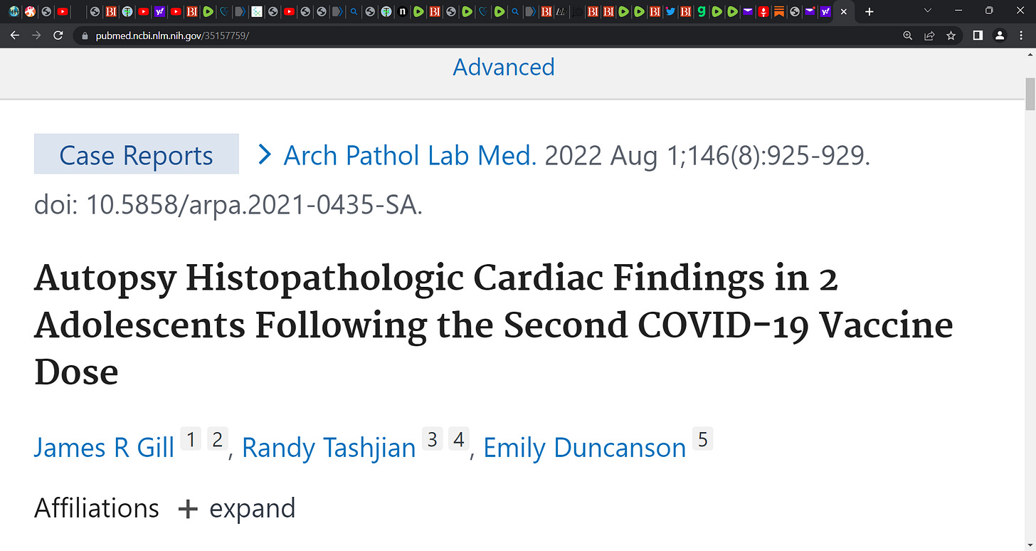 Gill et al.'s profound case series on the autopsy histopathologic cardiac findings in 2 Adolescents (one in Connecticut and one in Michigan) Following the Second mRNA COVID-19 Vaccine Dose (Pfizer)