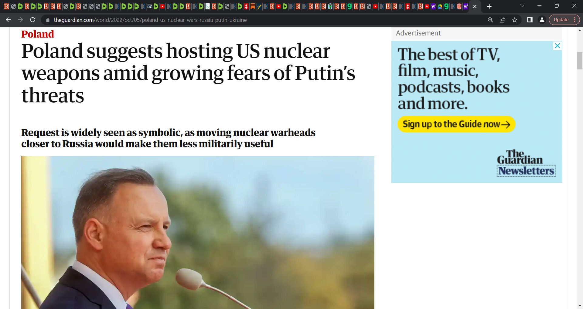 Go ahead, keep poking the bear, keep doing it, see what you will get: "Poland suggests hosting US nuclear weapons amid growing fears of Putin’s threats"; why?