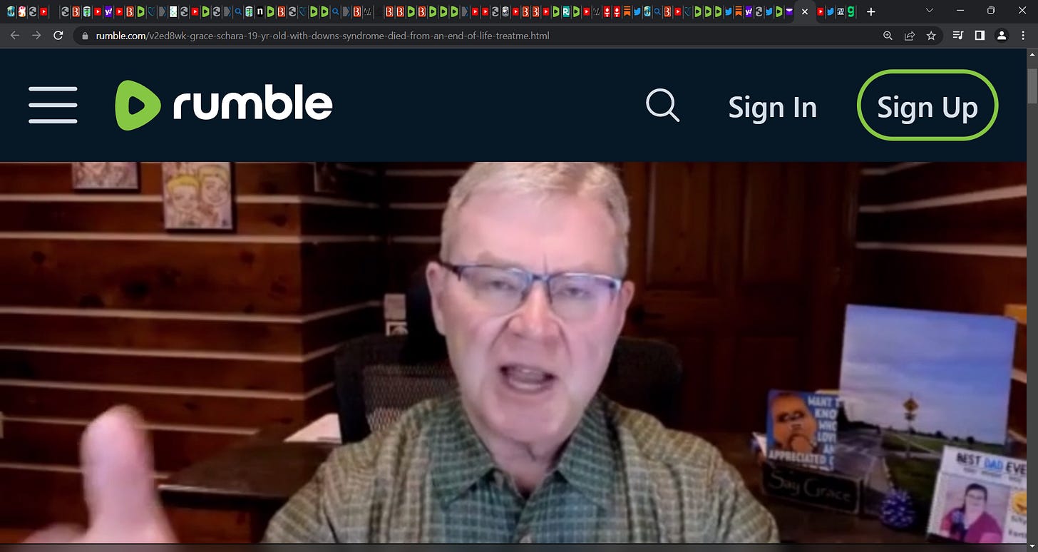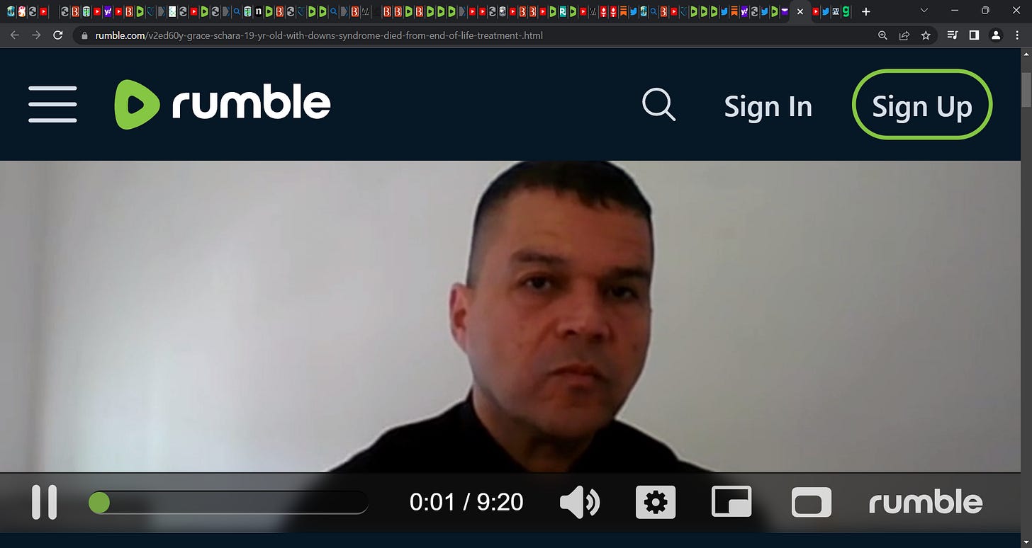 Part 2 (start at time 0:16) - https://rumble.com/v2ed8wk-grace-schara-19-yr-old-with-downs-syndrome-died-from-an-end-of-life-treatme.html