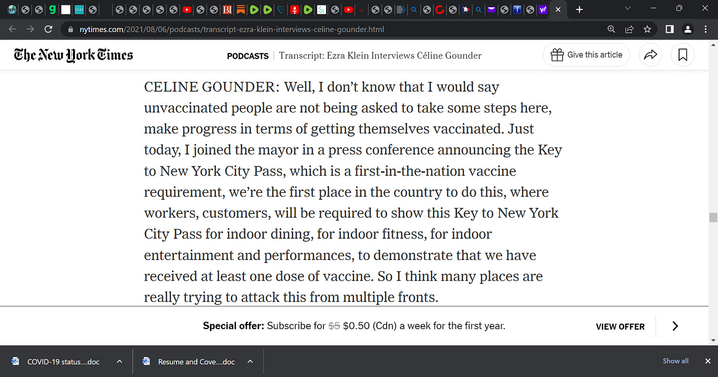 His wife (Dr. Gounder) has been a fierce proponent of the COVID gene therapy injections to the point of agreeing with ostracization if one is not vaccinated and as the COVIDian Taliban crazies would say, you should be banned from ‘polite society’. She even opined that it’s ok for the wealthy to get ahead of the poorer for vaccine. She advocated for forms of vaccine passports and the like, that would have transformed society as we know it in devastating ways. Her words below as to how unvaccinated should be prevented from normal societal privileges are devastating. She was no ordinary person. Her vaccine advocacy and senior role in the Biden administration is very important as you wrap your head around this tragic death of her husband. What was her role? Did she play an indirect ‘soft’ role in the deaths of people in the public?