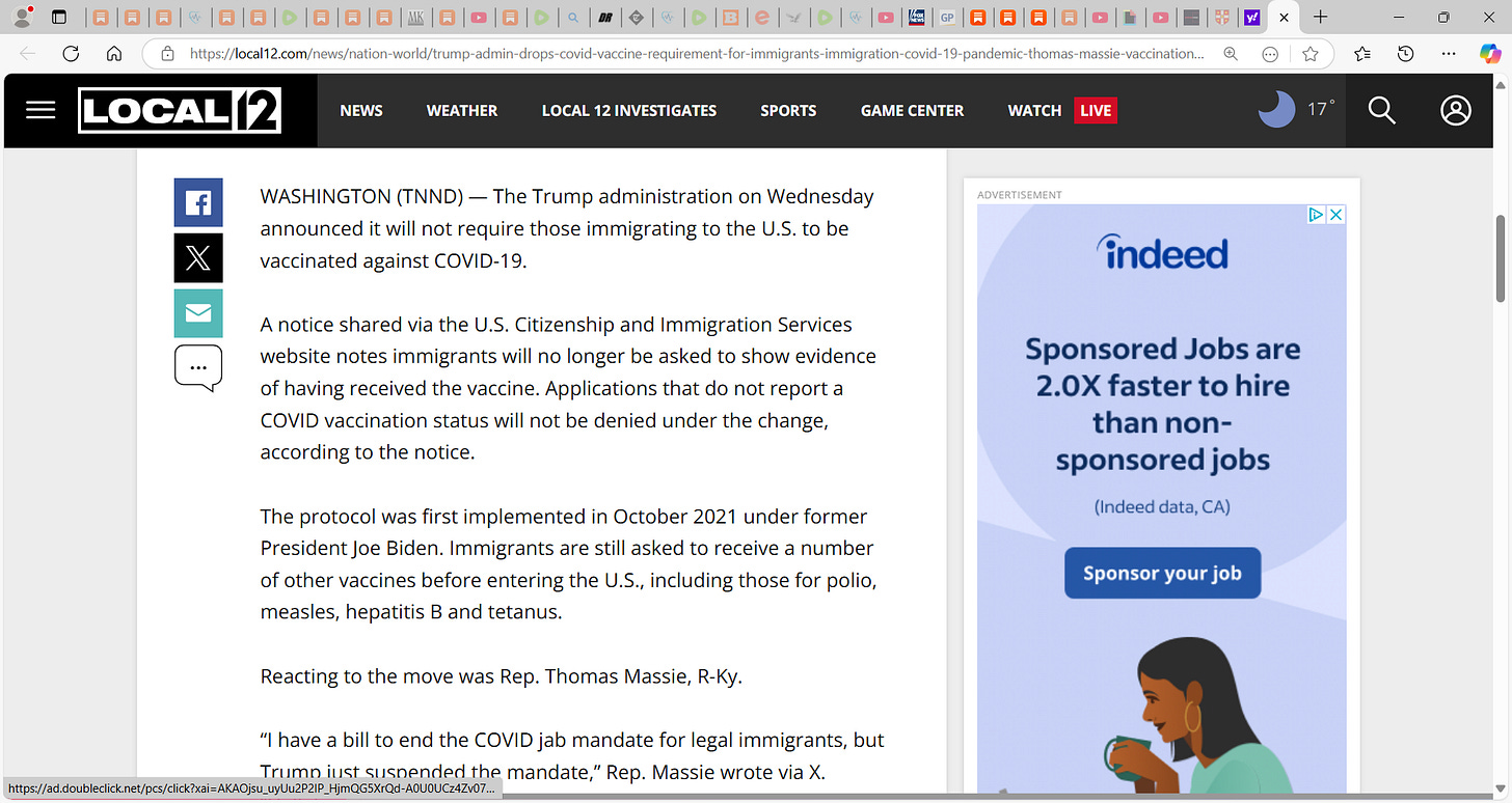 “I have a bill to end the COVID jab mandate for legal immigrants, but Trump just suspended the mandate,” Rep. Massie wrote via X. “Hallelujah!”’