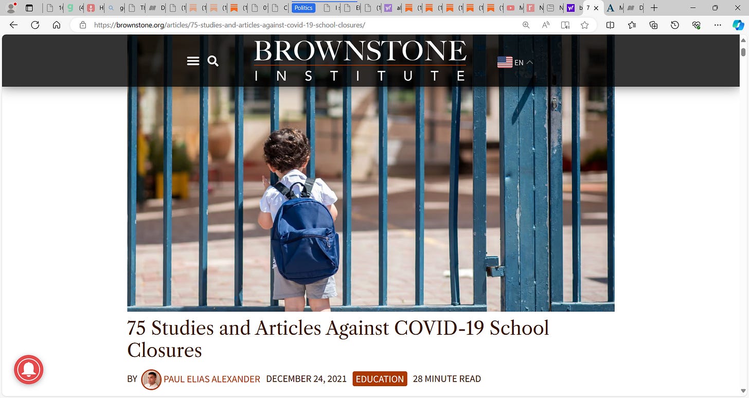 75 Studies and Articles Against COVID-19 School Closures ⋆ Brownstone Institute