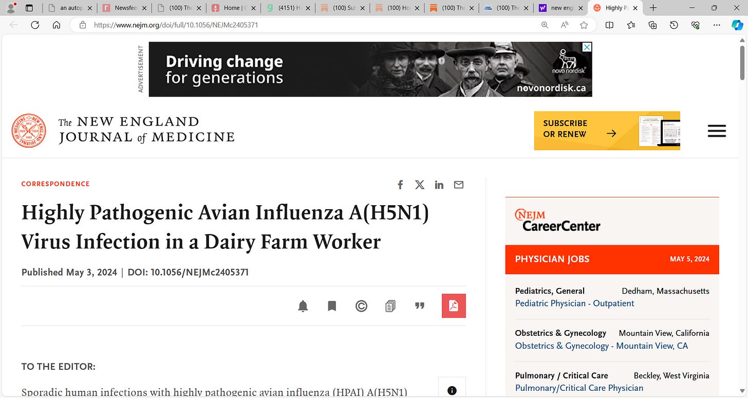 my prior stack on H5N1 and the fraud of it is worth re-mentioning and in short, do NOTHING! No lockdowns, no masks, no school closures, no business closures, no EFF in vaccine…it will fail as it did for COVID…just do nothing, take commonsense precautions and you be the judge if there is a problem…Until I/we tell you otherwise, if we say there is a problem, if I wrote there is a concern, then, until then, just spit on the television, spit on any of the public health officials who come near you talking their fraud H5N1 crap, yes, tell them I said spit on them, they deserve for what they did us in COVID, for their words and policies and actions KILLED: