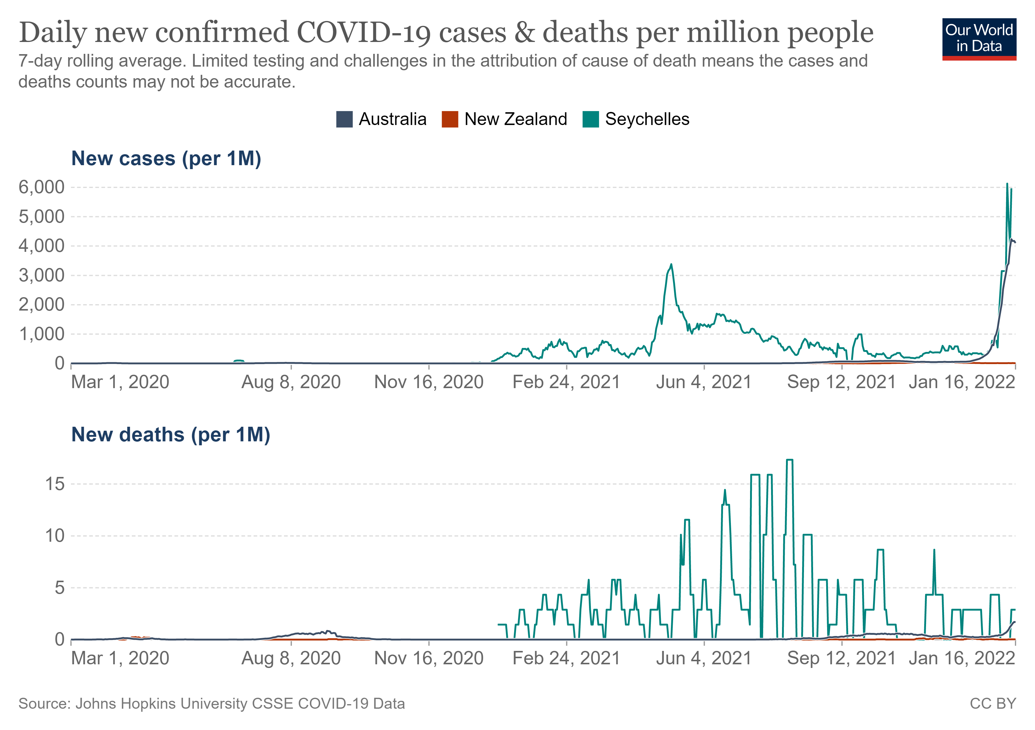 These graphs show you nations that are in trouble, for they locked down too long, too hard, and waiting for vaccine as their savior, and did not allow their nations to acquire exposure and to develop acquired-adaptive long lived immunity/population level that could have protected them as new variants like Omicron arrived; so they were and are vulnerable for not only is the population full of ‘susceptibles’, they are faced with having used a vaccine that is worthless and does not protect the upper airways, and they are getting infected post vaccine and the phenomenon of the original antigenic sin (I have renamed the Mortal antigenic sin as the bias, the prejudice to the immune system response, is life long); stay tuned, New Zealand will go the way of Australia as you see, the death curve is following the infection curve as OMICRON takes hold.