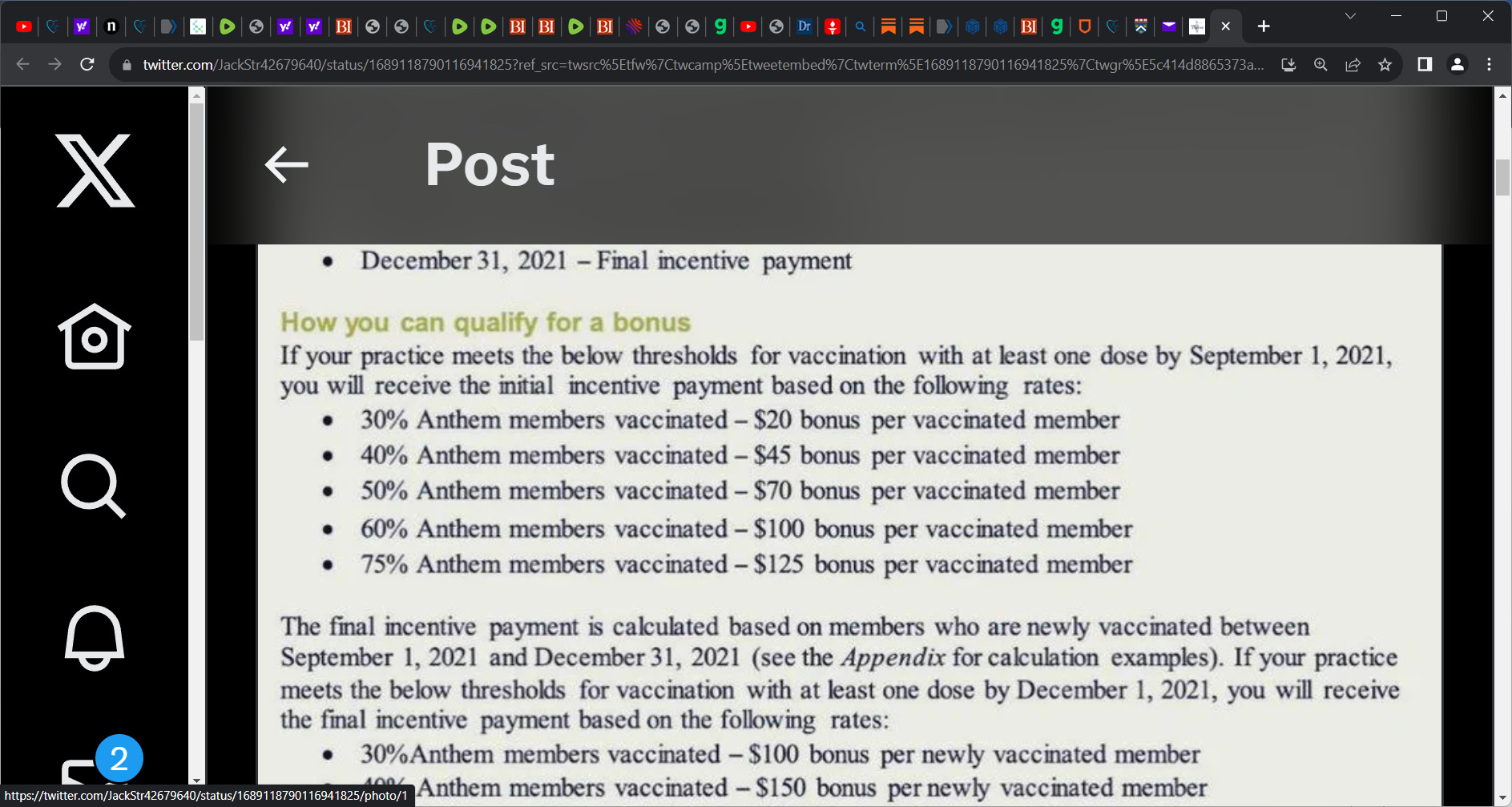 For each Anthem member vaccinated up to 30 percent of the member pool, a physician qualified to receive a $20 “bonus” payment. If a doctor can get more than 30 percent of Anthem members jabbed, he or she received $45 for each up to 40 percent; $70 for each up to 50 percent; $100 for each up to 60 percent; and $125 for each at 75 percent and beyond.’