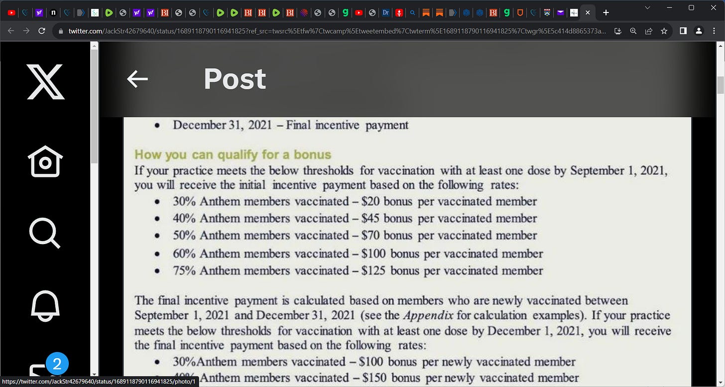 Doctors Were Financially Rewarded For Pushing The Covid Jab.'; IMO this is criminal & must be investigated! they were bribed by health insurance companies to peddle as many jabs as possible for cash