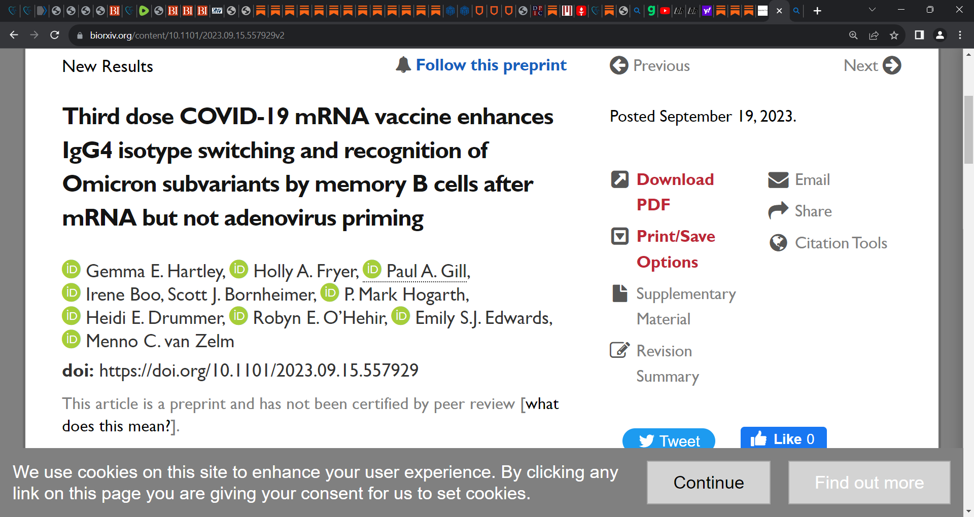 Hartley et al. comfirms mRNA 'IMMUNE TOLERANCE' (IgG4 'class-switch' by Irrgang et al.): "Third dose COVID-19 mRNA vaccine enhances IgG4 isotype switching and recognition of Omicron subvariants by