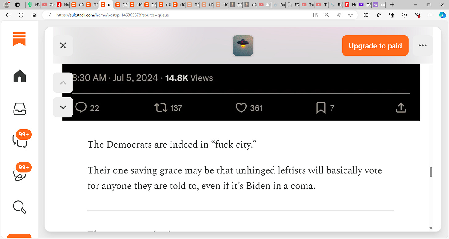 2nd is correct, democrats are in a clusterfuck and it is interesting how they get out of this for Joe is comatosed and not of sound mind and the public disdains VP Giggles and Cackles…2nd stack is funny yet serious and enlightening, support 2nd, here is the stack: