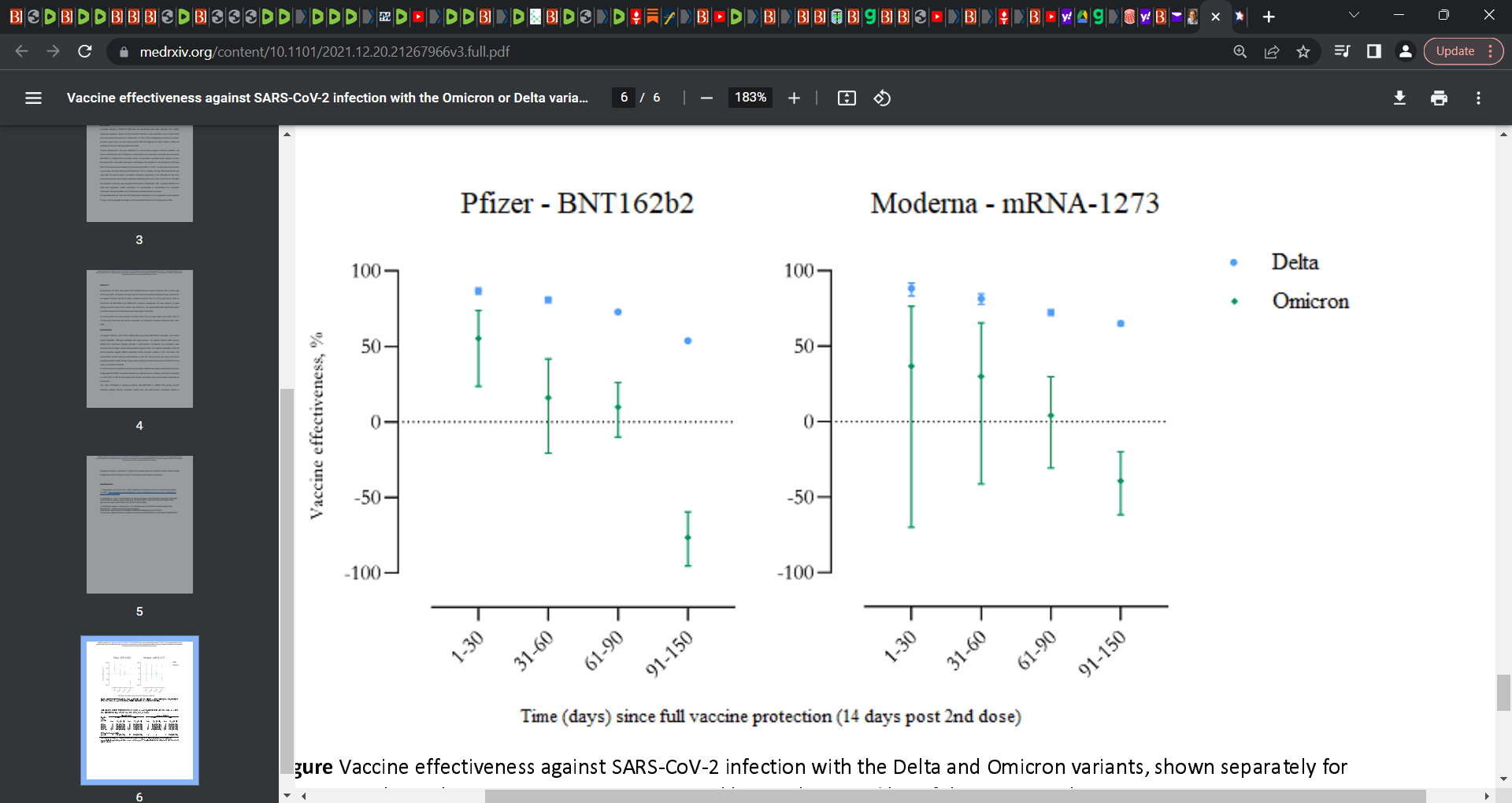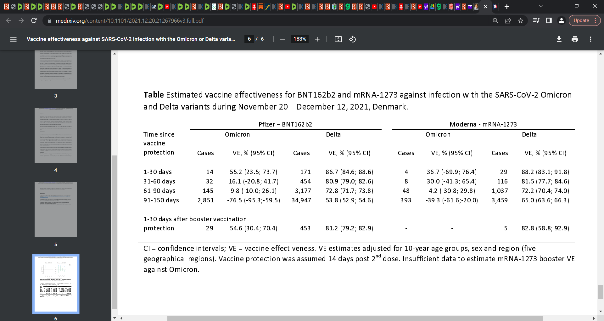 The authors write in la la land. They know they are deceiving you for they fail to discuss the table above and the graph that shows it is a catastrophic failure and you are a booster addict now and will need boosts every day soon. You have damaged your immune system. What they said above is junk, makes no sense. Just look at the graphs and table at about 2 months and that was in December 2021. Now, this vaccine give protection for a few days. Not even. Both mRNAs. These people like Francis Collins and Fauci and Bourla must be investigated and jailed if what they did, they did knowingly.