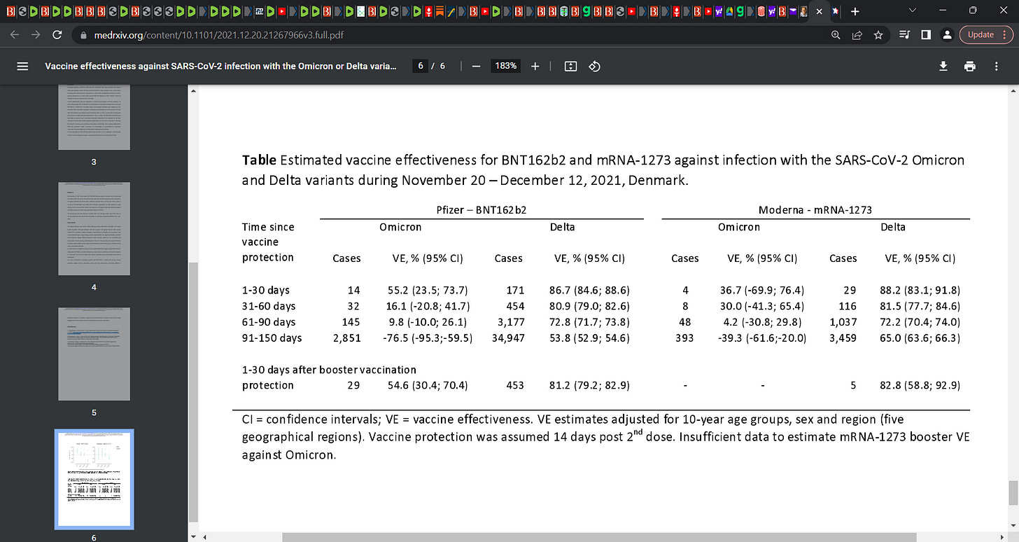 Holm Hansen: "Vaccine effectiveness against SARS-CoV-2 infection with the Omicron or Delta variants following a two-dose or booster BNT162b2 or mRNA-1273 vaccine series: Danish study"; boosters daily!