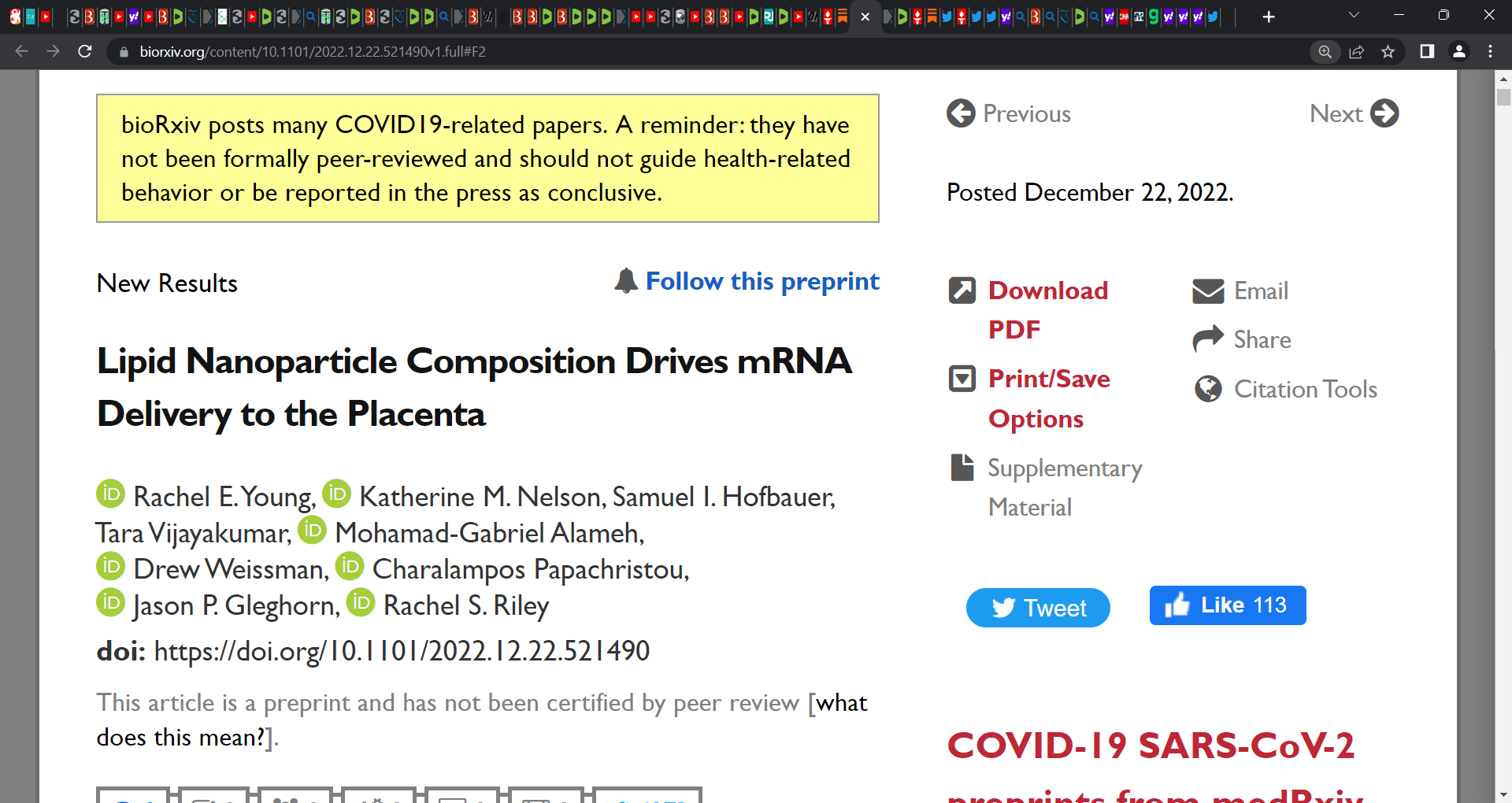 This study by Young et al. raises serious questions and demands urgent study as it shows that lipid-nano particles (LNPs) facilitate delivery of mRNA to the placenta vs saline or free mRNA; concerns??