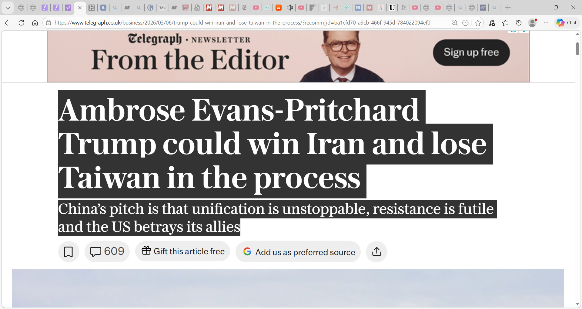 and Trump could win Iran and lose Taiwan in the process; China’s pitch is that unification is unstoppable, resistance is futile and the US betrays its allies; is this a terrible miscalculation?