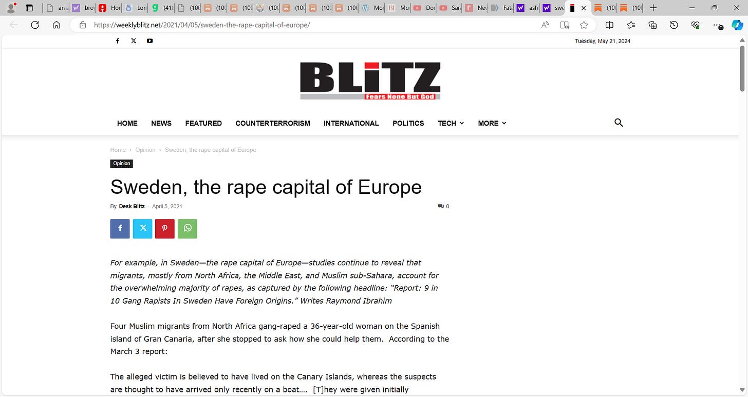 Sweden, the rape capital of Europe - BLiTZ (weeklyblitz.net)