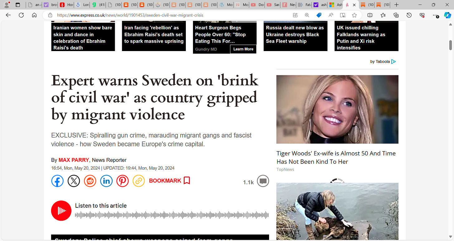 ‘Expert warns Sweden on 'brink of civil war' as country gripped by migrant violence’