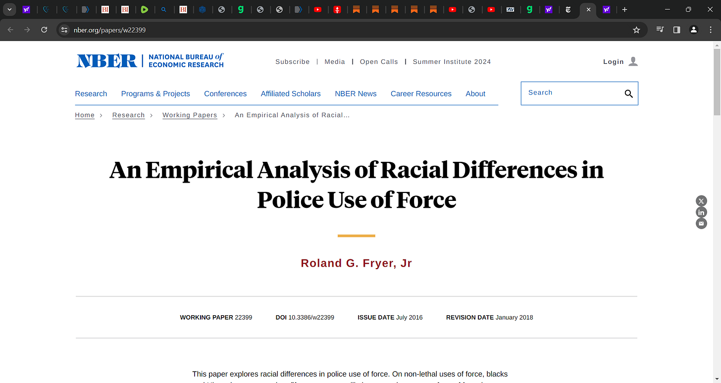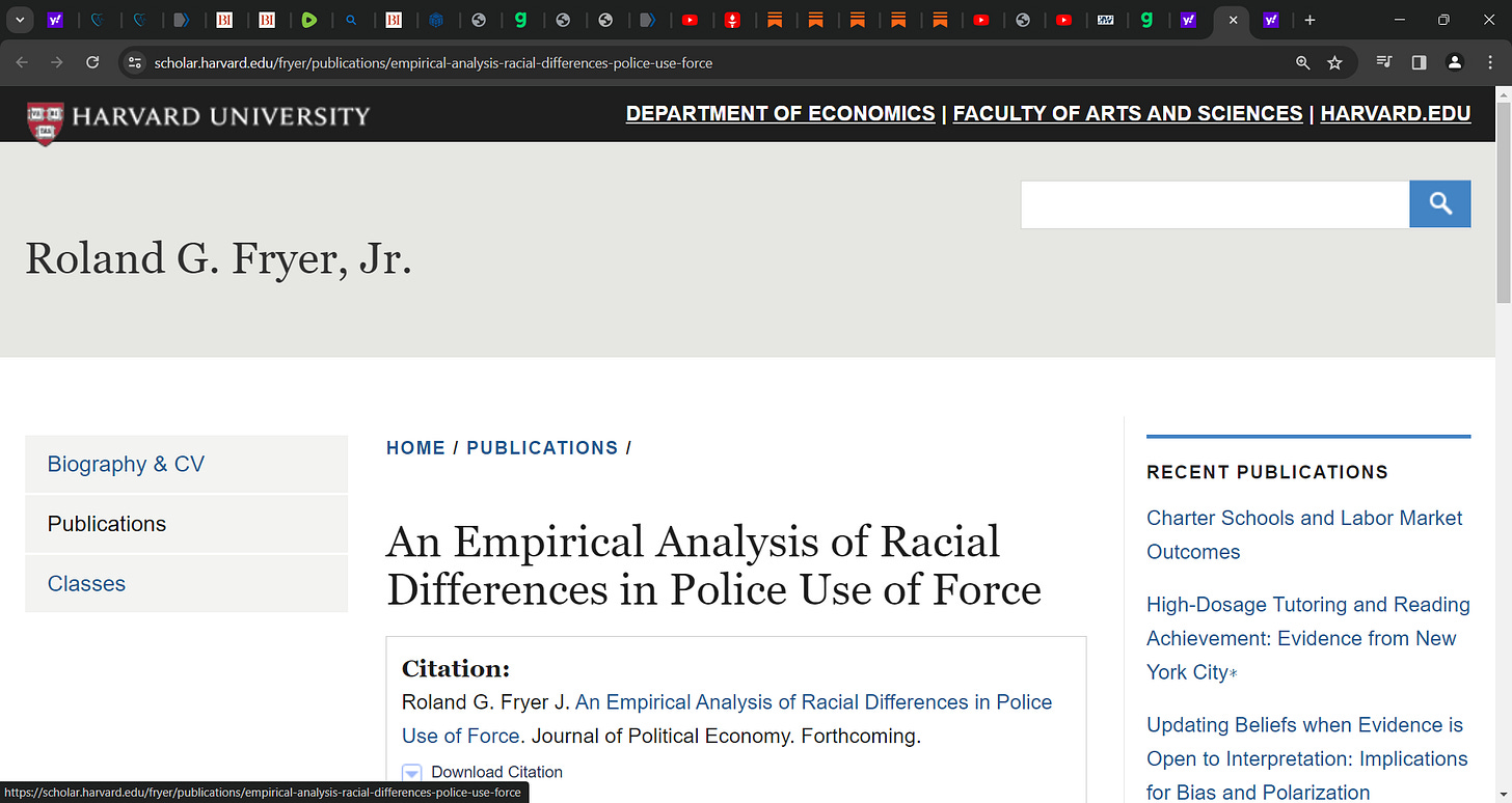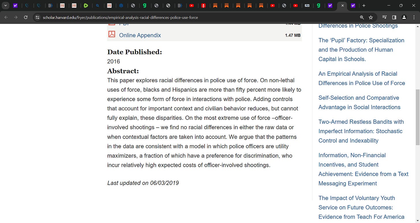 Huh? What? Fryer found what in his Harvard study? (& what, he was fired by anti-semite plagiarist Gay? ha ha, karma, what a bit*h) that there is no racial difference in police shooting? what? I have