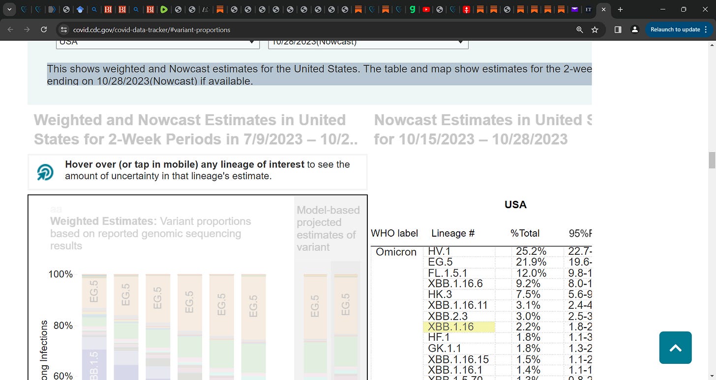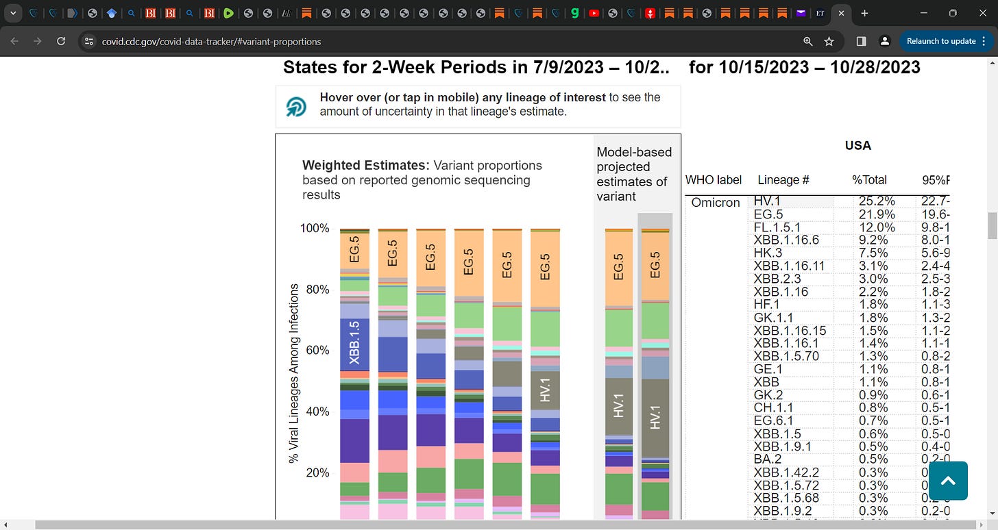HV.1 now the dominant COVID sub-variant clade in the United States (25.2%), displacing EG.5 (21.9%) with multiple mutations, very infectious but no indication of superior lethality; driven by sub-