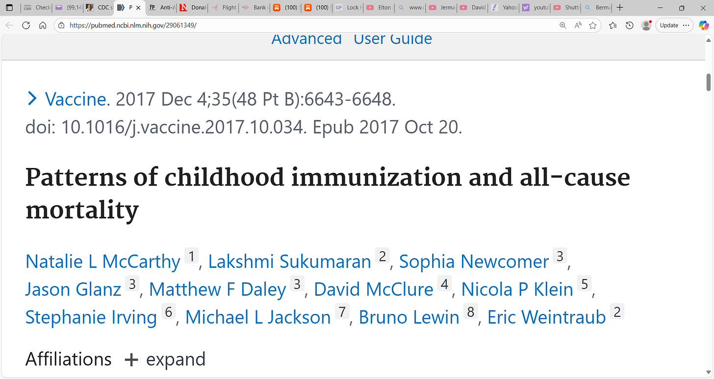 Why do we vaccinate our children when this American 2017 McCarthy study (in Vaccine) looking at patterns of childhood immunization and all-cause mortality based on childhood immunization schedule