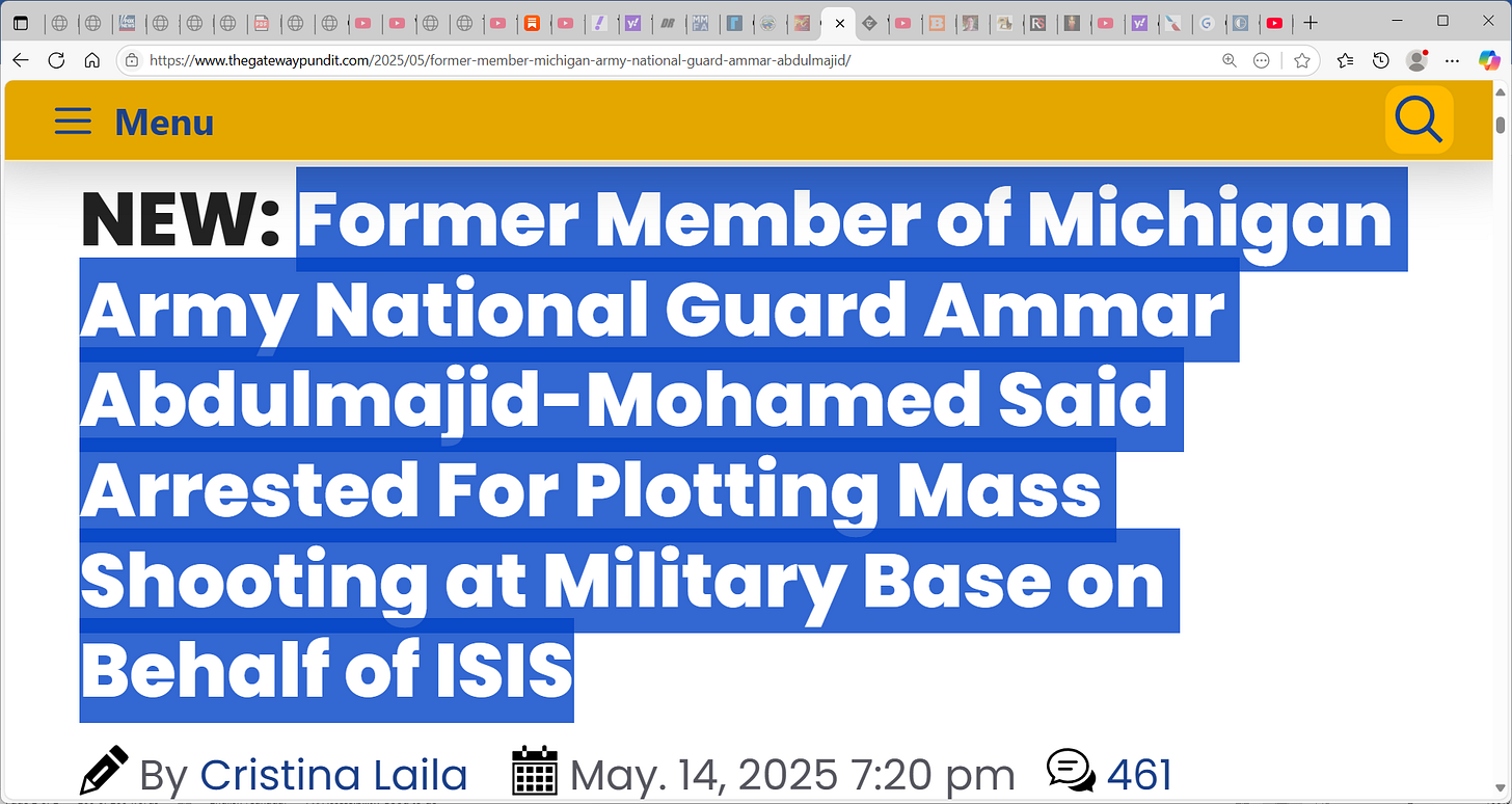 ‘The Feds arrested former member of Michigan Army National Guard Ammar Abdulmajid-Mohamed Said for plotting a mass shooting at a military base in Warren, Michigan.