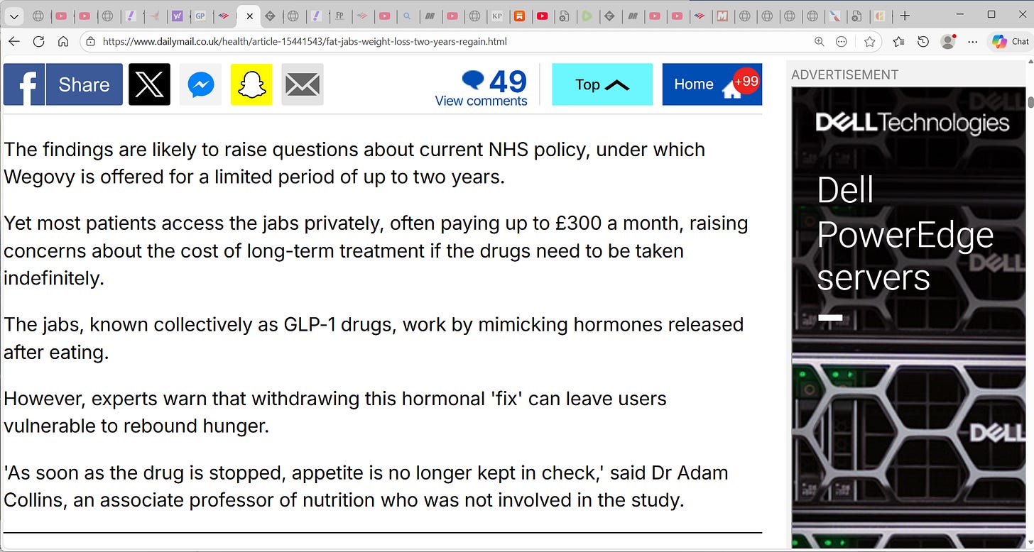 Besides serious GI damage etc., now Oxford research shows massive rebound weight gain! "Take fat jabs for life, experts rule - as pivotal study reveals users coming off the drugs pile the pounds back