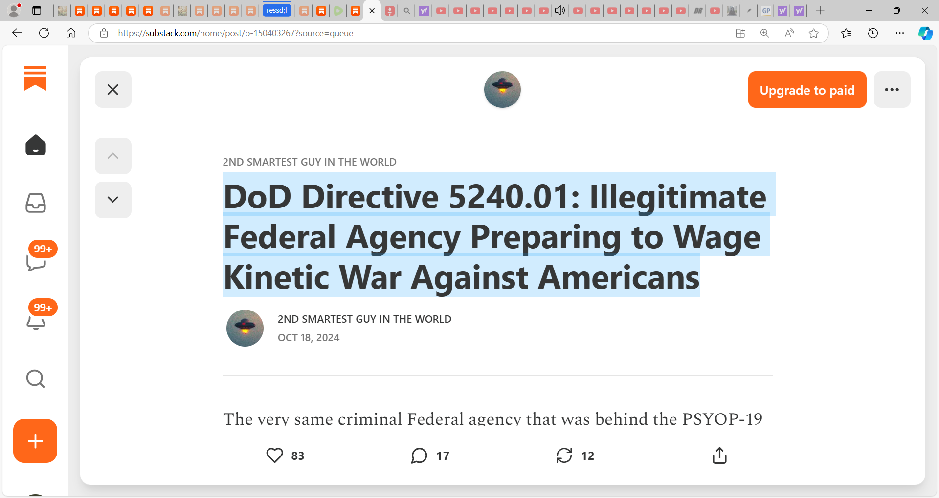 with "DoD Directive 5240.01: Illegitimate Federal Agency Preparing to Wage Kinetic War Against Americans"; Posse Comitatus Act: 18 U.S. Code § 1385, the military is expressly prohibited