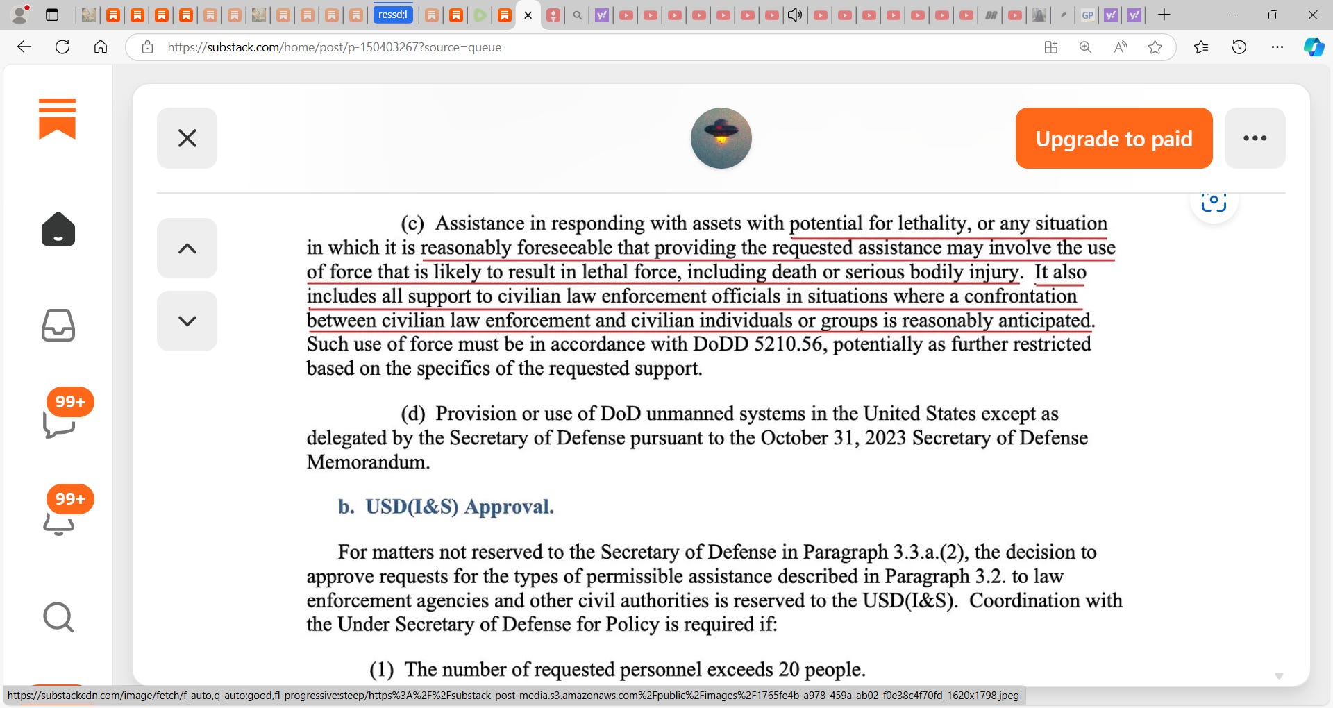 Yet the US government under the current Harris et al. administration appears to be activating whereby US military can use deadly force on US citizens in the USA? Implications are horrendous.