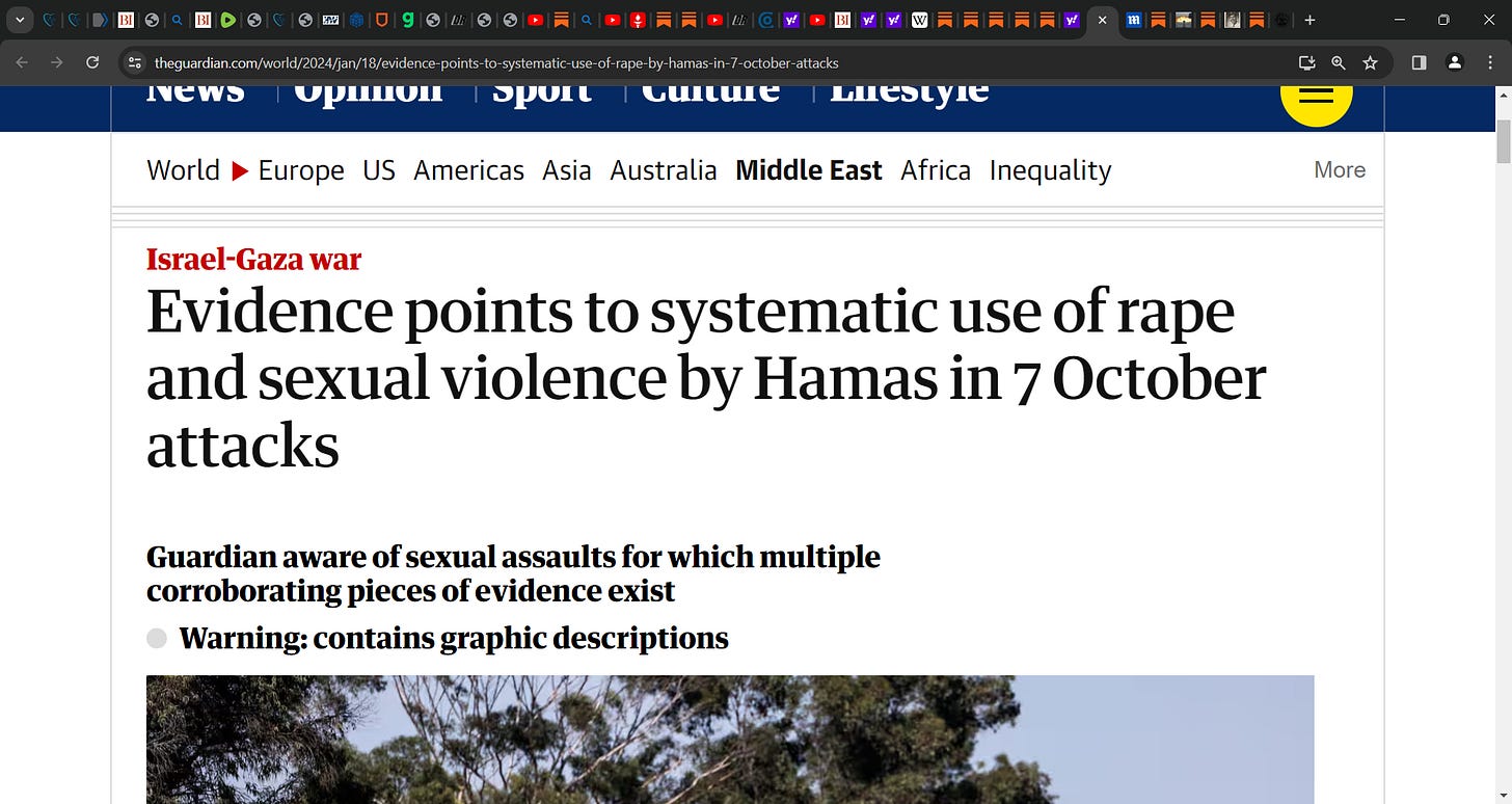 And, while the events of October 7th could never be construed to be anything other than utterly horrific, immoral, grotesque, deplorably wrong, utterly unjustified and 100% criminal, I am extremely grateful (on a daily basis) for the education I have received since that terrible day.