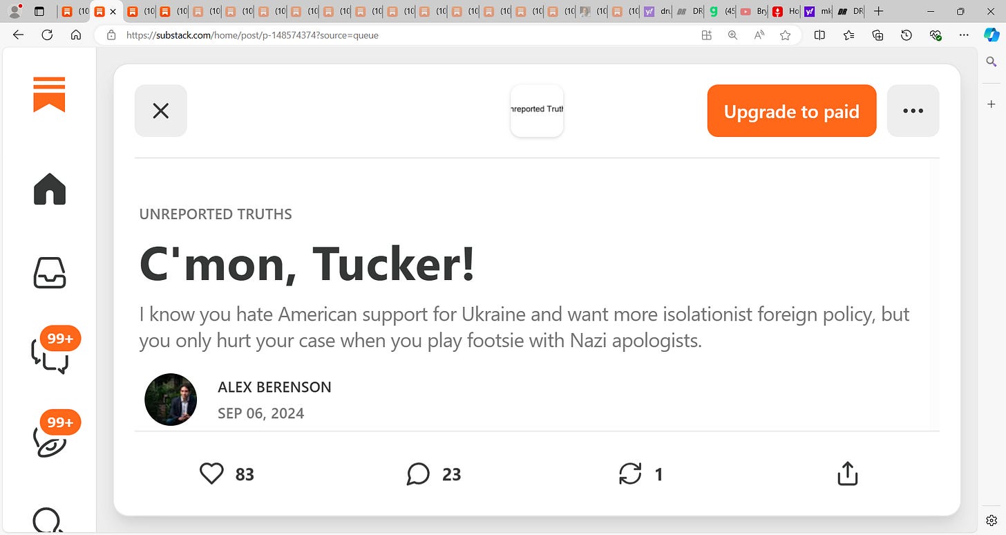 American support $ arms for UKRAINE! I like Tucker Carlson but DON'T agree with discussion with Darryl Cooper, known Nazi apologist; this is not about Hamas or Israel; it's about balance;