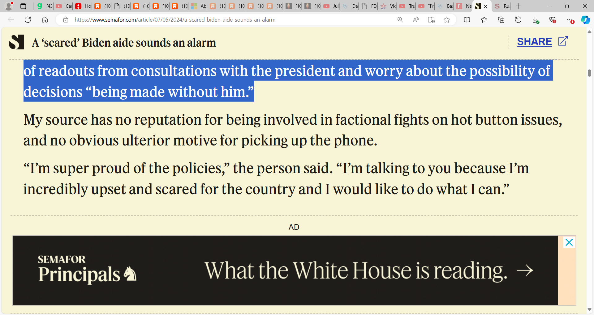 ‘The person insisted on careful ground rules: No details on the specific policy area they’d work on, no gender, age, or sexual orientation. Their credibility basically depends on my vouching that they’re a serious person, which I can do — though I should also say this person has nothing to say about the president’s physical condition, and was limited to their own experience outside Biden’s tight inner circle.