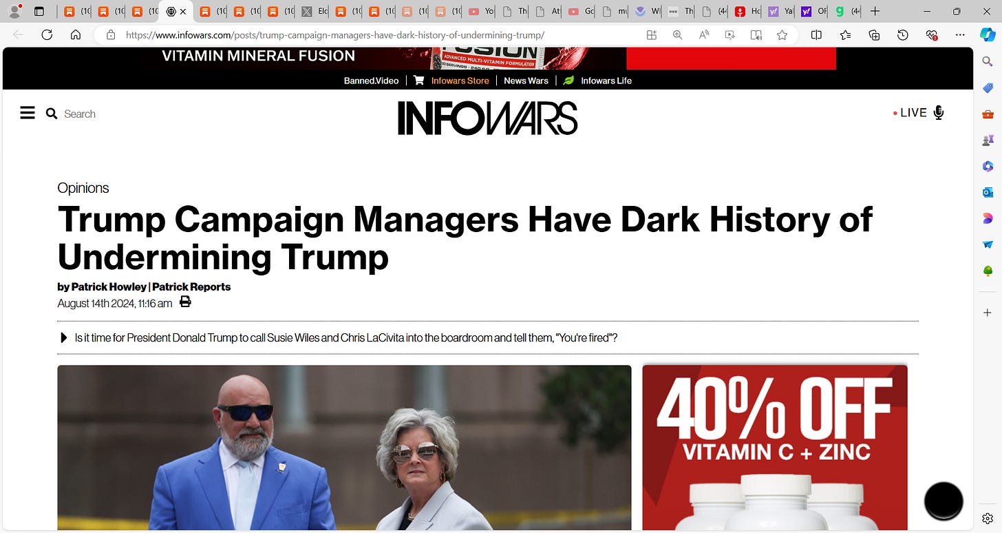 You're FIRED!! FIRE campaign managers Susie Wiles & Chris LaCivita IMMEDIATELY, POTUS Trump! swap out JD; they are destroying YOU, see my stacks & now see INFOWARS below; they are UNDERMINGING TRUMP!