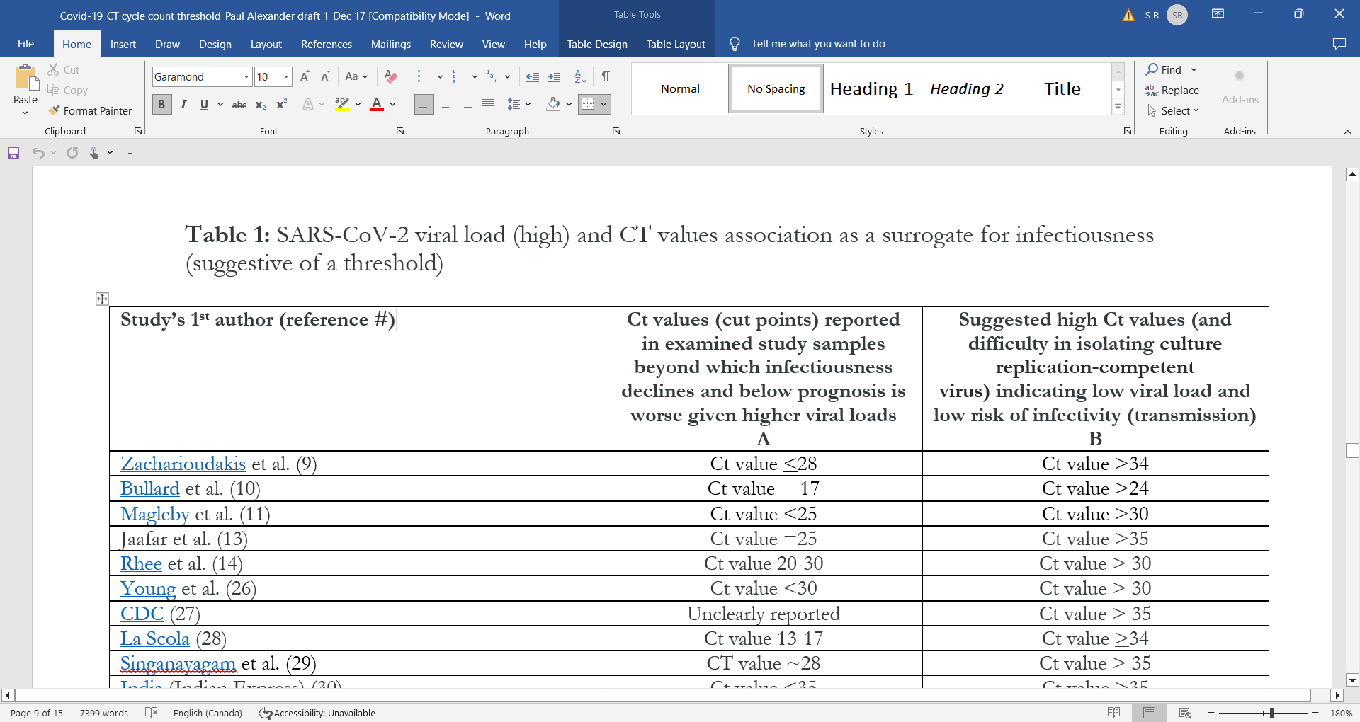 Table 1: SARS-CoV-2 viral load (high) and CT values association as a surrogate for infectiousness (suggestive of a threshold)