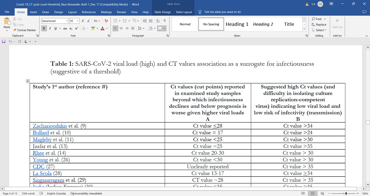 I wrote this paper on cycle-count threshold (Ct) for the RT-PCR 'process', unifying the evidence showing that Ct of 24 amplifications & above is the threshold, beyond it is non-infectious, non-lethal